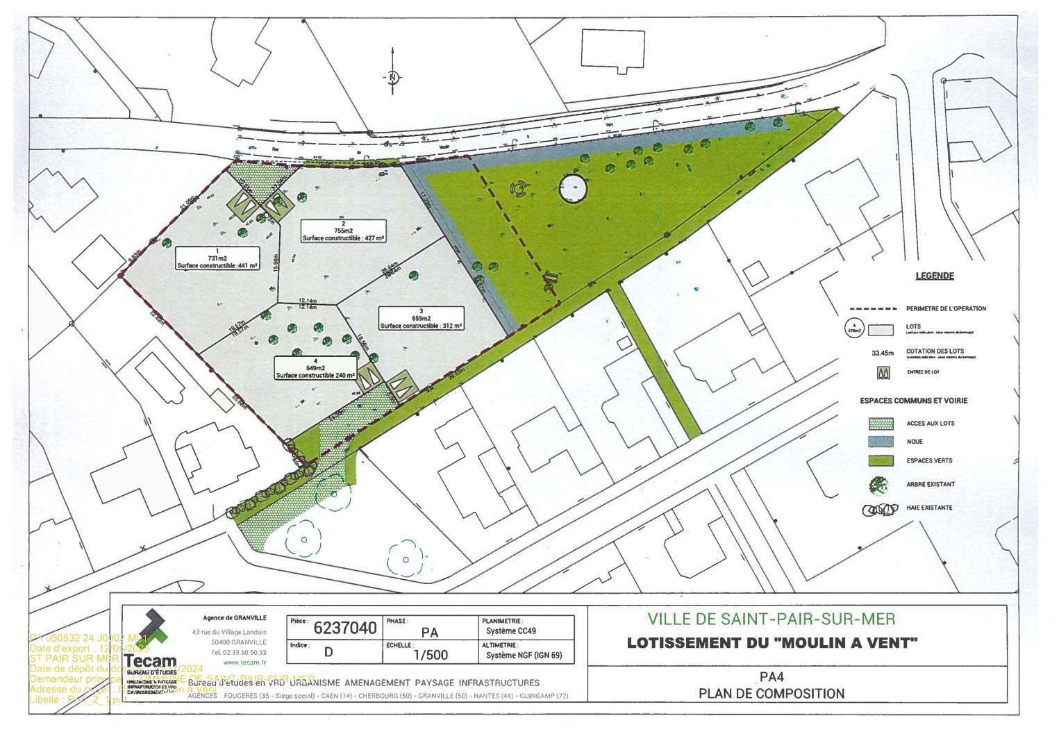 A 500m du coeur de ville, dans un bel environnement, terrain â bâtir (lot n°2) avec vue mer de 755m² dont 427m² de constructible viabilisé (eau, électricité, tout à l'égout, fibre).