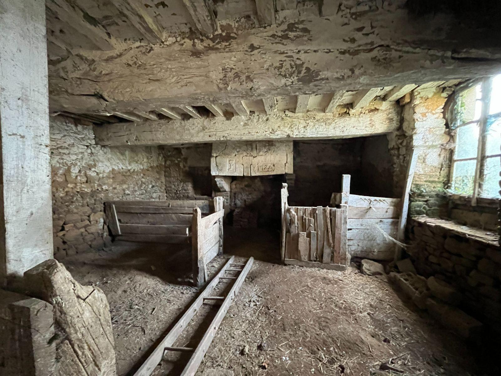 Situé en campagne au calme, corps de ferme composé de trois bâtiments principaux avec cour et jardin... Maison en pierre composée d'une entrée, séjour, cellier, chambre, pièce de vie avec coin cuisine et salle d'eau avec wc. Grenier au dessus de l'ensemble. Ancienne grange composée de deux parties avec grenier au dessus de l'ensemble. Ancienne habitation à restaurer, aujourd'hui à usage de stockage composée de deux parties distinctes : garage et bergerie avec grenier au dessus. Hangar couvert en tôle sur l'arrière et jardin autour.