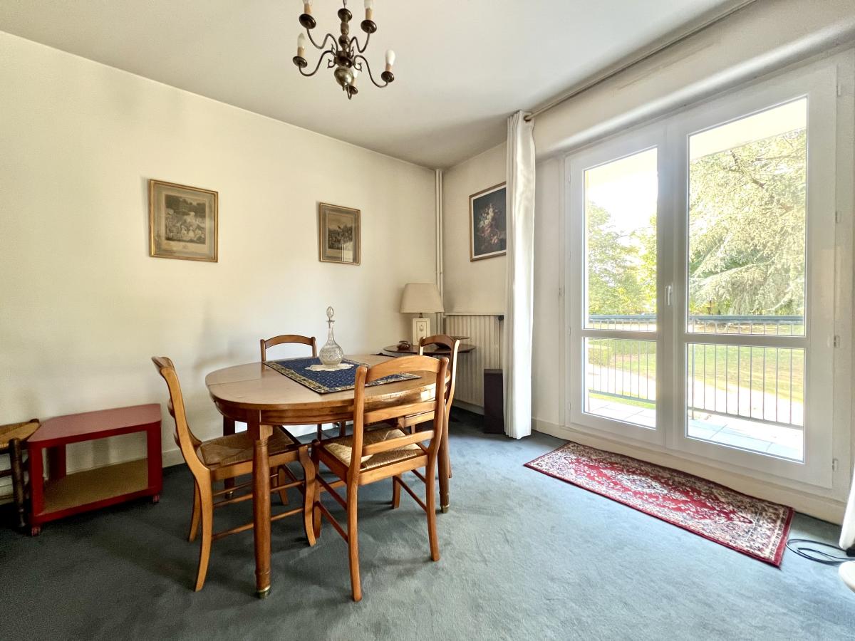 Appartement F4 de 85 m² comprenant entrée, cuisine, séjour salon de 33 m² avec balcon de 14 m² exposé sud, vue dégagée sur le parc, dégagement avec placards, wc, salle d'eau, deux chambres. Une cave. Une place de parking. Un GARAGE.