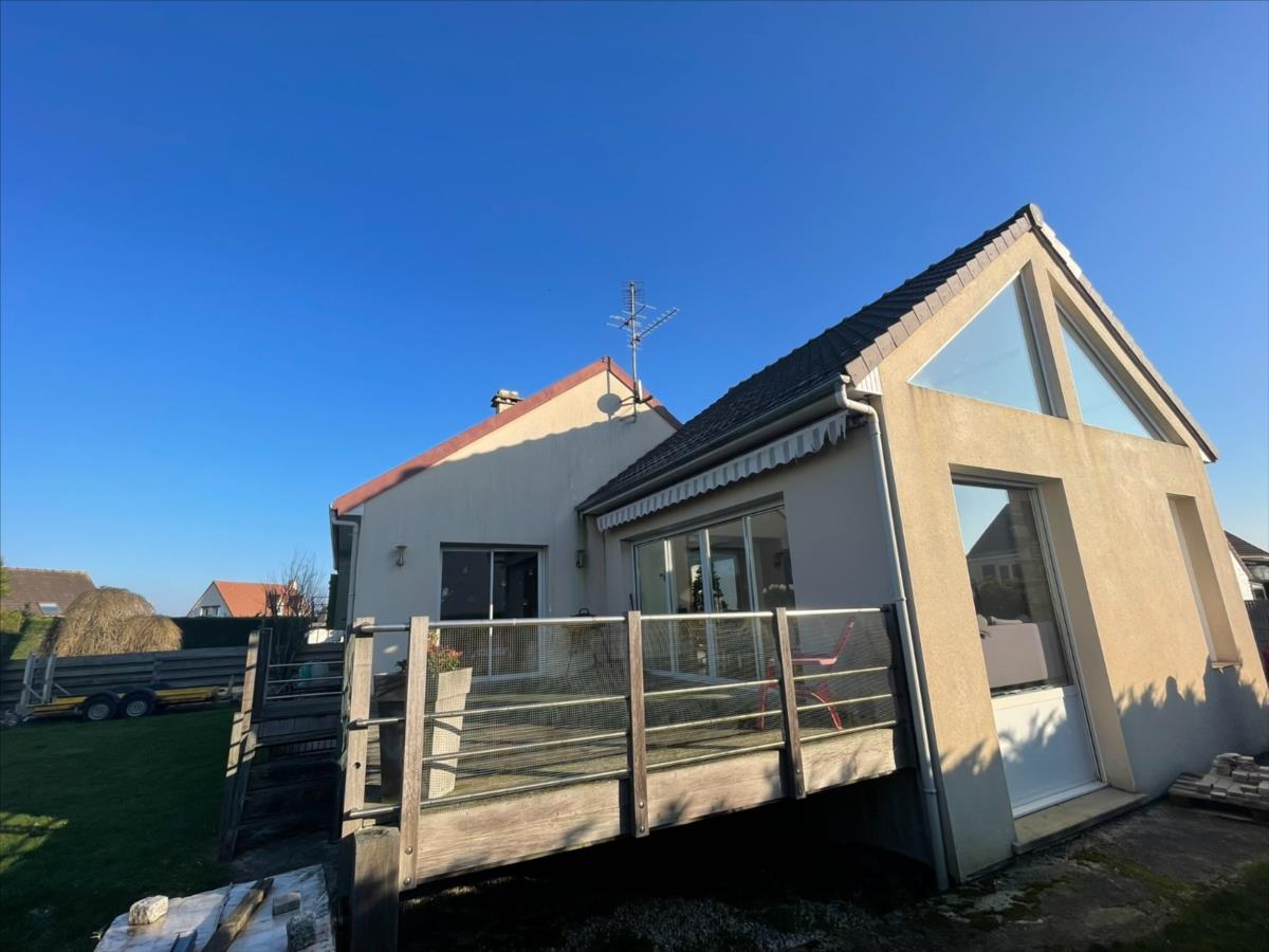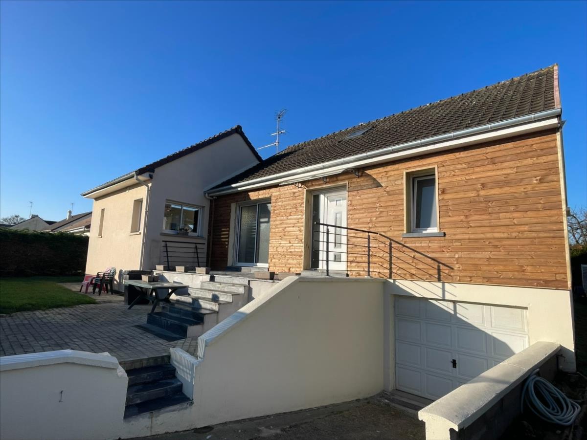 NOUVEAU 'Chez des Notaires à Mes Côtés'A l'entrée de DOUVRES côté CAEN et à 5 min du centre ville.Une maison individuelle de 1975 rénovée avec une extension de 2010.Surface env 110 m², sur un Sous-sol complet ( Garage - atelier - cave - wc- buanderie)Au rez-de-chaussée : salon avec cheminée (env 25 m²), un cuisine aménagée équipée accès terrasse et arrière cuisine (env 30m²), dégagement : 2 chambres, wc, salle d'eau, bureau.A l'étage : 2 chambres mansardées.Chauffage gaze de ville et Ballon d'eau Thermodynamique. Jardin et terrasse 569m².