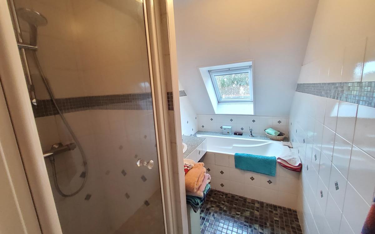 - au rez-de-chaussée : cuisine, salon avec cheminée, salle à manger, chambre, bureau, salle de bains et W.C, garage.