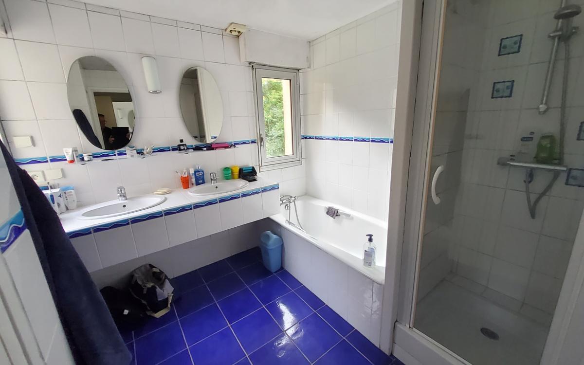 - à l'entresol : chambre avec salle de bains, wc, chambre.