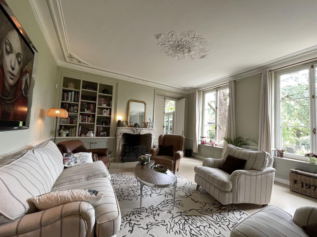 Très proche du Centre Ville et de la gare , nichée dans un écrin de verdure et sans vis à vis . Magnifique Maison de Maître du XIXème , de 279 m² ,comprenant de belles pièces de réception très lumineuses, six chambres dont une grande suite parentale . Belle terrasse , exposée Sud, dominant un charmant parc de 2747 m² , clos de murs. Garage de 100 m² avec mezzanine . Autre dépendance à usage de cave et atelier .