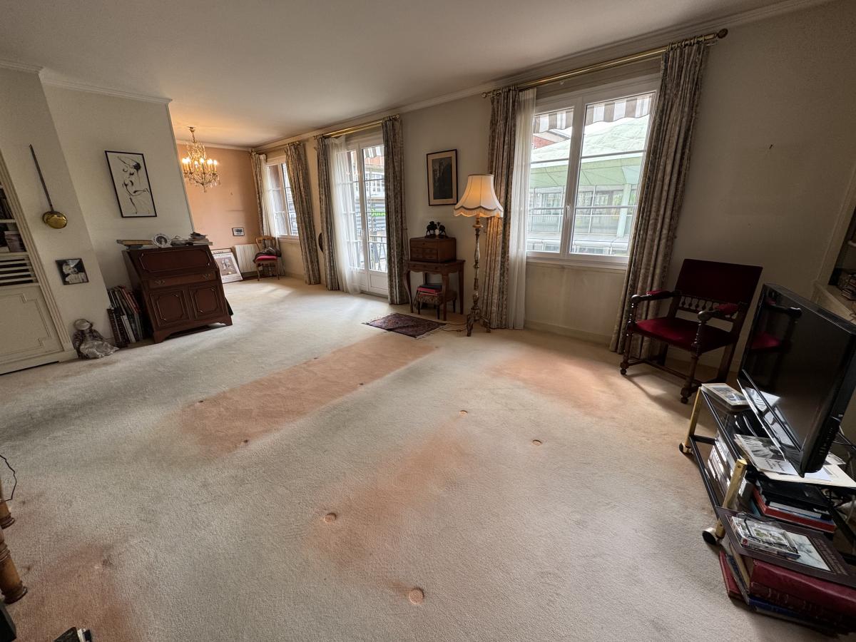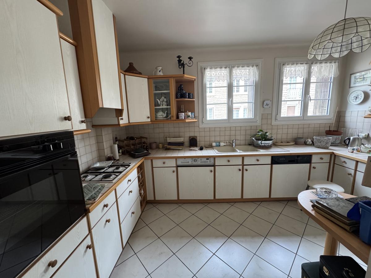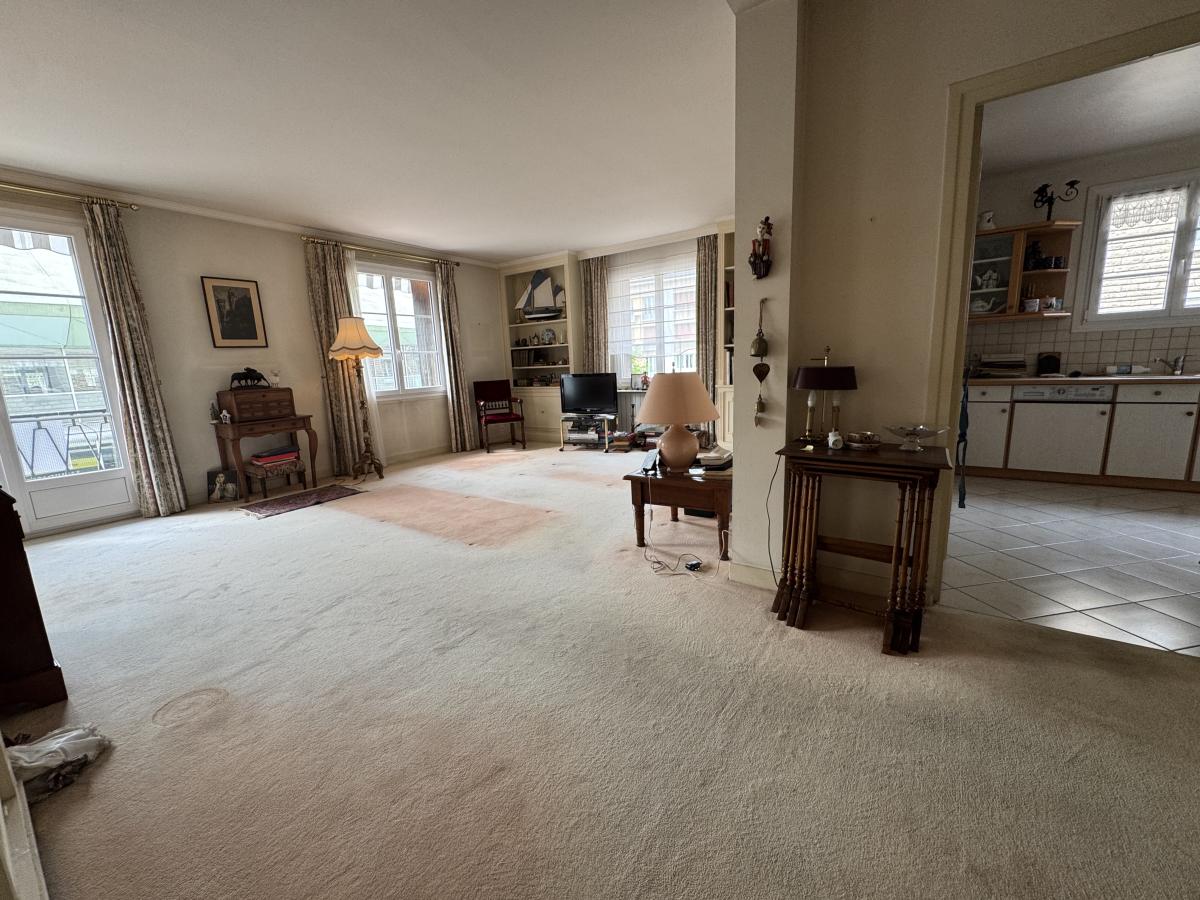 LISIEUX Au 1er Etage sans ascenseur Bel appartement de 100 m² comprenant une entrée avec placards desservant une cuisine aménagée et équipée, séjour très lumineux avec balcon, deux chambres , salle de bains avec baignoire et douche et wc