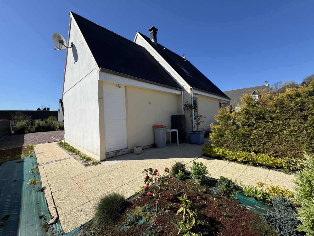 LISIEUX Proche (Saint Martin de la Lieue) Maison comprenant: RDC: entrée, séjour-salon, cuisine aménagée, wc et garage aménageable Etage: palier, 2 chambres et dressing Abri de jardin Terrain de 500m²