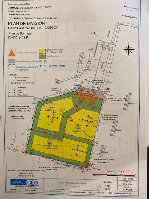 MEZIDON VALLEE D'AUGE, MEZIDON CANON, commerces, écoles et gare SNCF, parcelle de terrain à bâtir d'une superficie de 934 m² viabilisée.