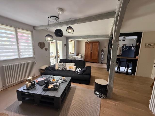 Entre Orbec et Lisieux spacieuse maison d'habitation aux prestations de qualité, rénovée avec goût, dans un bourg avec école, 5 Kms d'Orbec, 12 kms de Lisieux, comprenant :