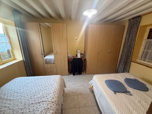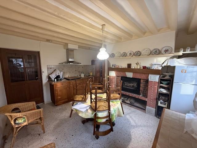 - Au rez-de-chaussée : cuisine avec coin repas et cheminée insert, deux chambres, salle d'eau et W.C.