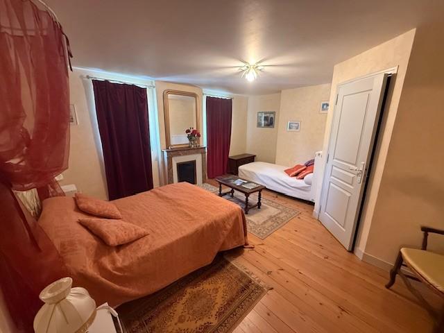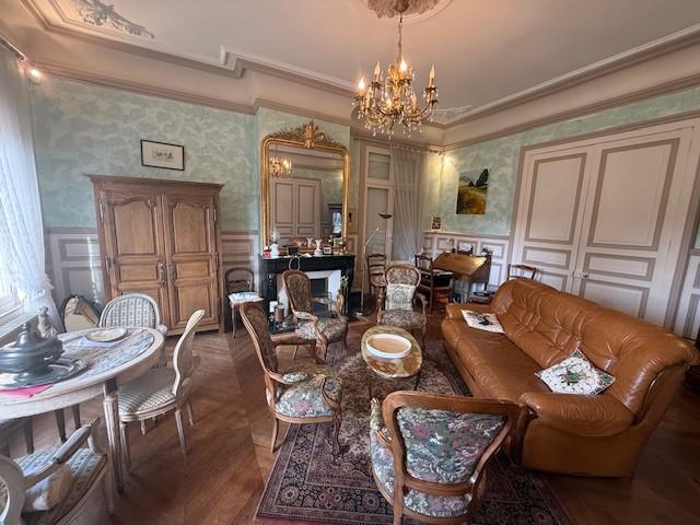 - Au rdc : Entrée, placards, cuisine, salle avec cheminée, chaufferie fuel, petit salon, bureau, salon avec cheminée, salle à manger avec chemine, wc et salle d'eau.