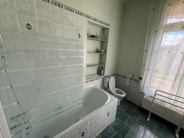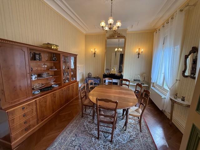 - Au 1er étage : pièce palière, bureau ou chambre, chambre avec salle d'eau et wc, dressing, chambre, dressing-bureau, autre chambre avec placards, salle de bains et wc.