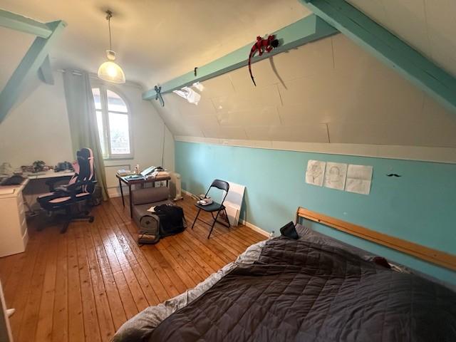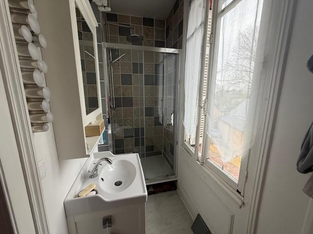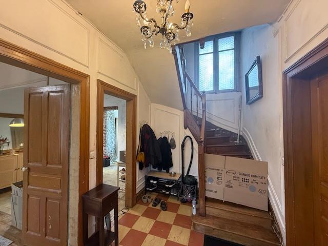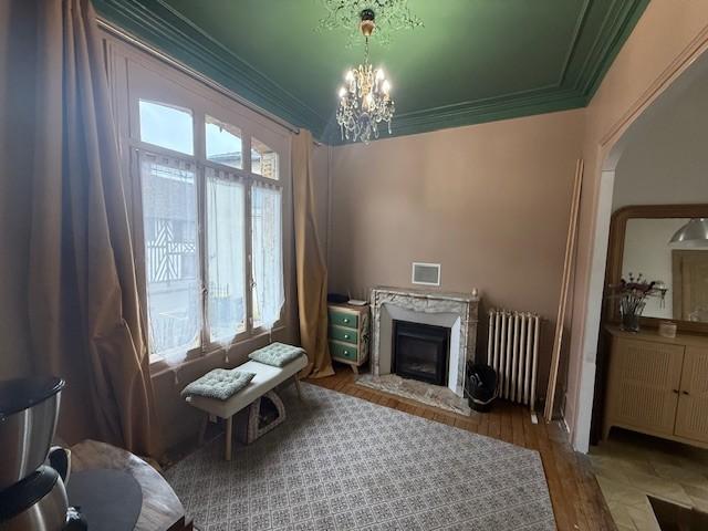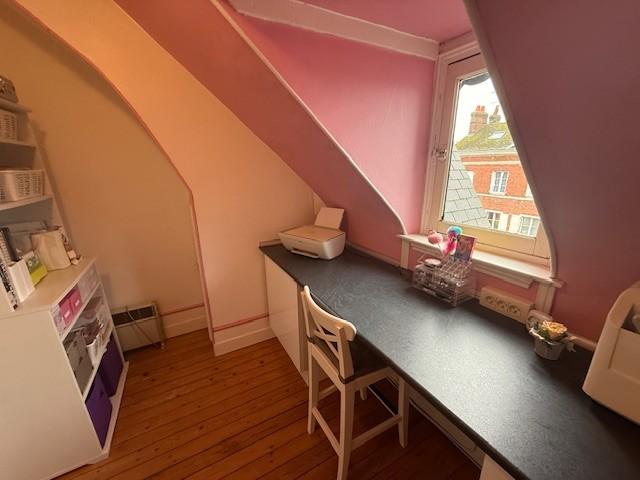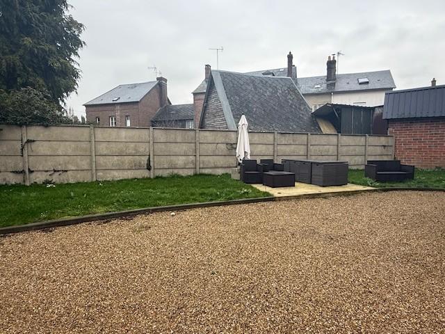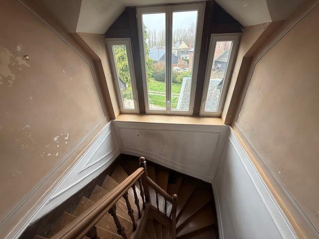 Thiberville, hyper centre, maison Anglo Normande construite en nbriques et silex et couverte en ardoises (toiture récente) comprenant : - Au rdc : Entrée, séjour-salon, cuisine ouverte aménagée sur coin repas, petit salon ou salle à manger avec cheminée insert. - A demi-palier : salle d'eau et wc. - Au 1er étage : palier, 2 chambres dontune suite parentale avec salle d'eau, autre salle d'eau avec wc sanibroyeur. - Au 2ème étage : palier, bureau, 2 chambres dont une avec dressing possibilité salle d'eau. - En rez-de-jardin : cellier buanderie, cave chaufferie fuel en dessous. Grand garage. Terrain clos de 654m². Tout à l'égoût. Montant maximum des honoraires pratiqués par l'Office.
