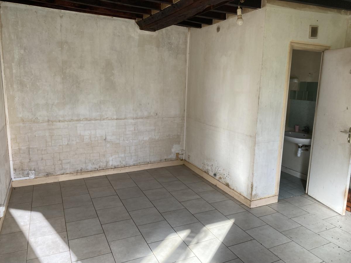 - au rez-de-chaussée : une pièce avec coin-cuisine, une chambre, une salle d'eau avec W.C., grenier sur le dessus (accès extérieur)