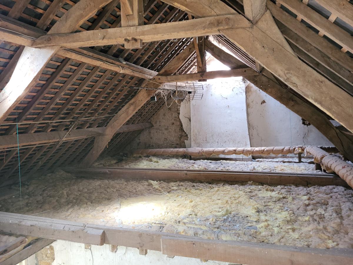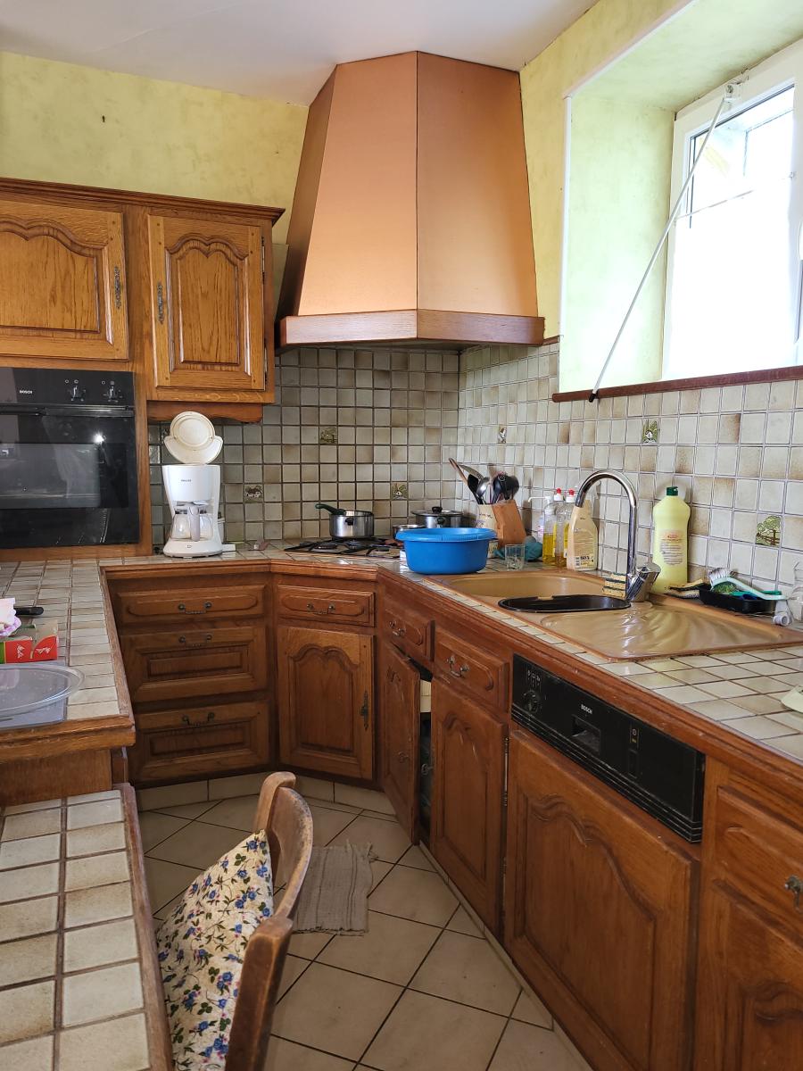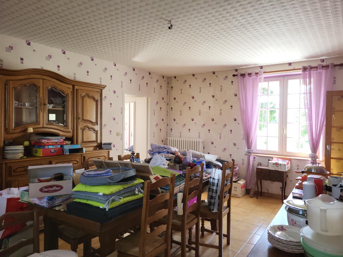 Rez-de-chaussée : cuisine-séjour avec cheminée-insert, salle à manger, une chambre, salle d'eau, wc