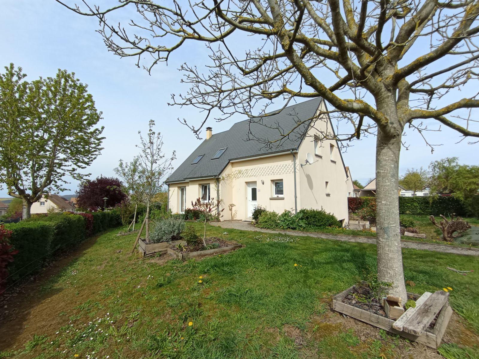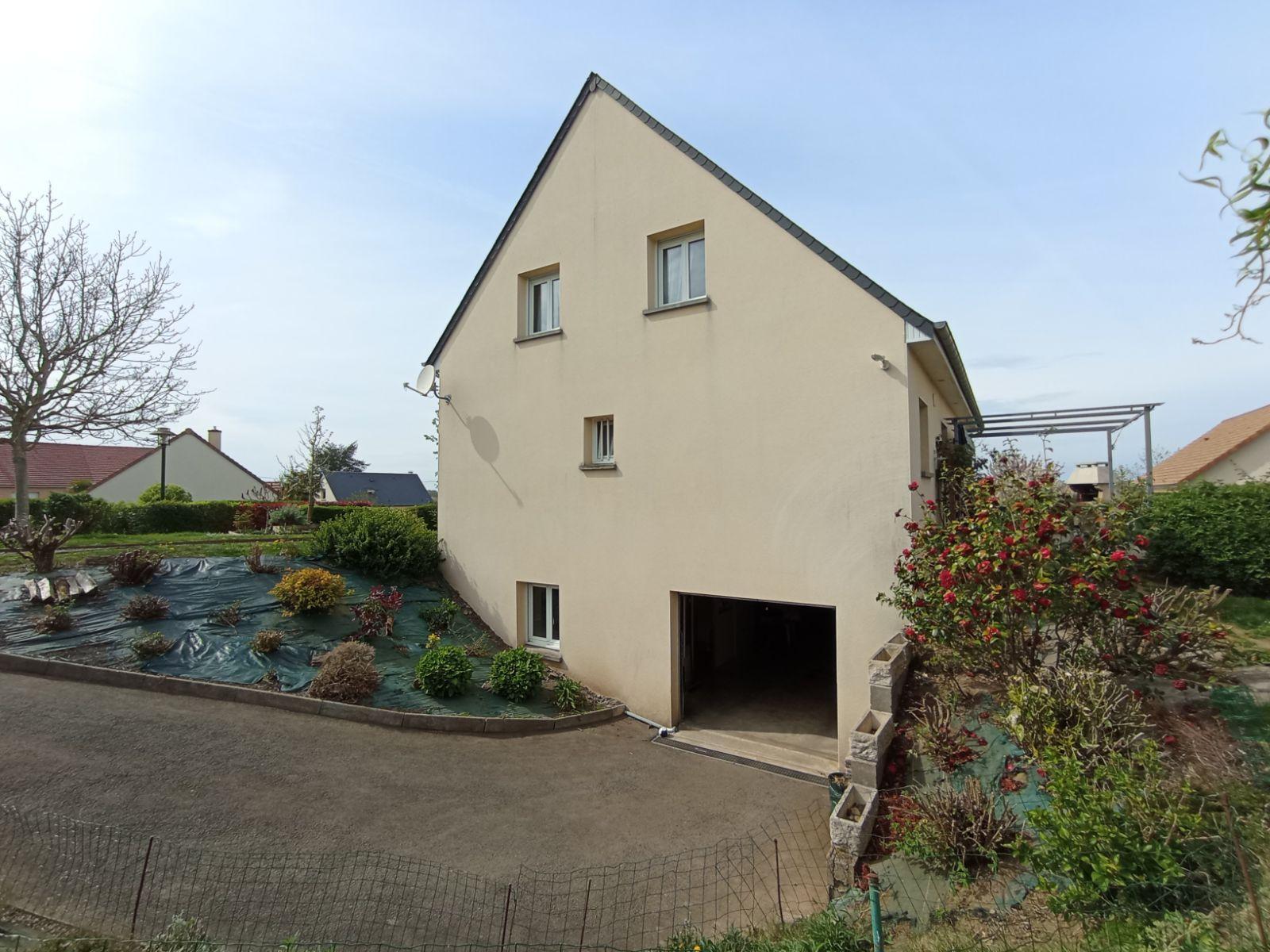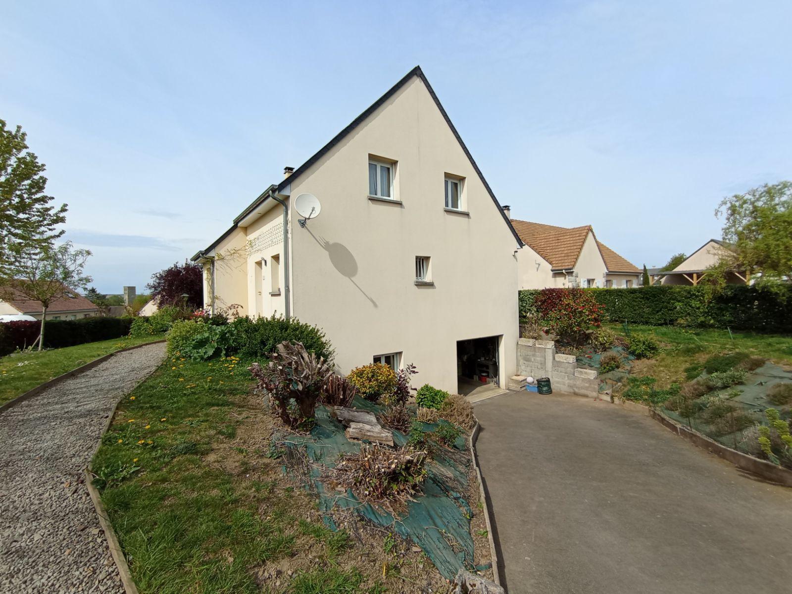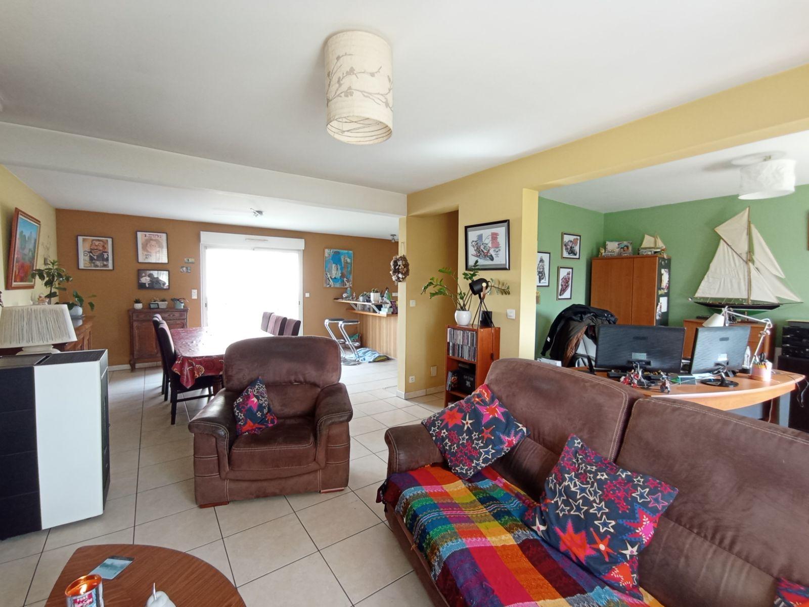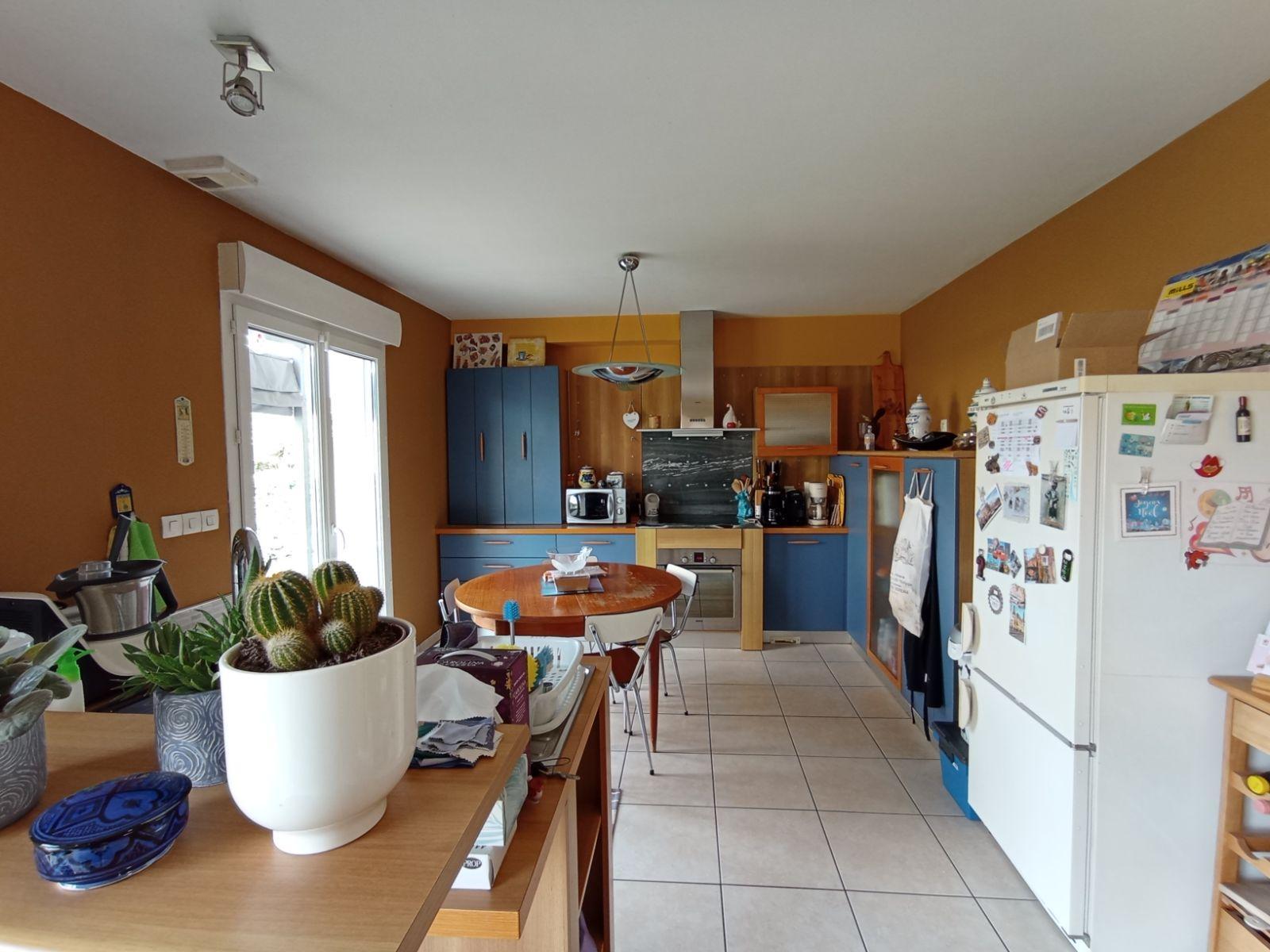 Pavillon individuel de 2003, situé en lotissement et comprenant : Au rez-de-chaussée : entrée, dégagement, séjour / salon, cuisine ouverte aménagée et équipée (four, plaque, hotte), bureau ouvert, salle de bains avec baignoire et douche, WC, cellier ; A l'étage : palier en mezzanine, trois chambres, salle de douches avec WC. Combles perdues au-dessus. Sous-sol complet. Terrain autour de 672m².