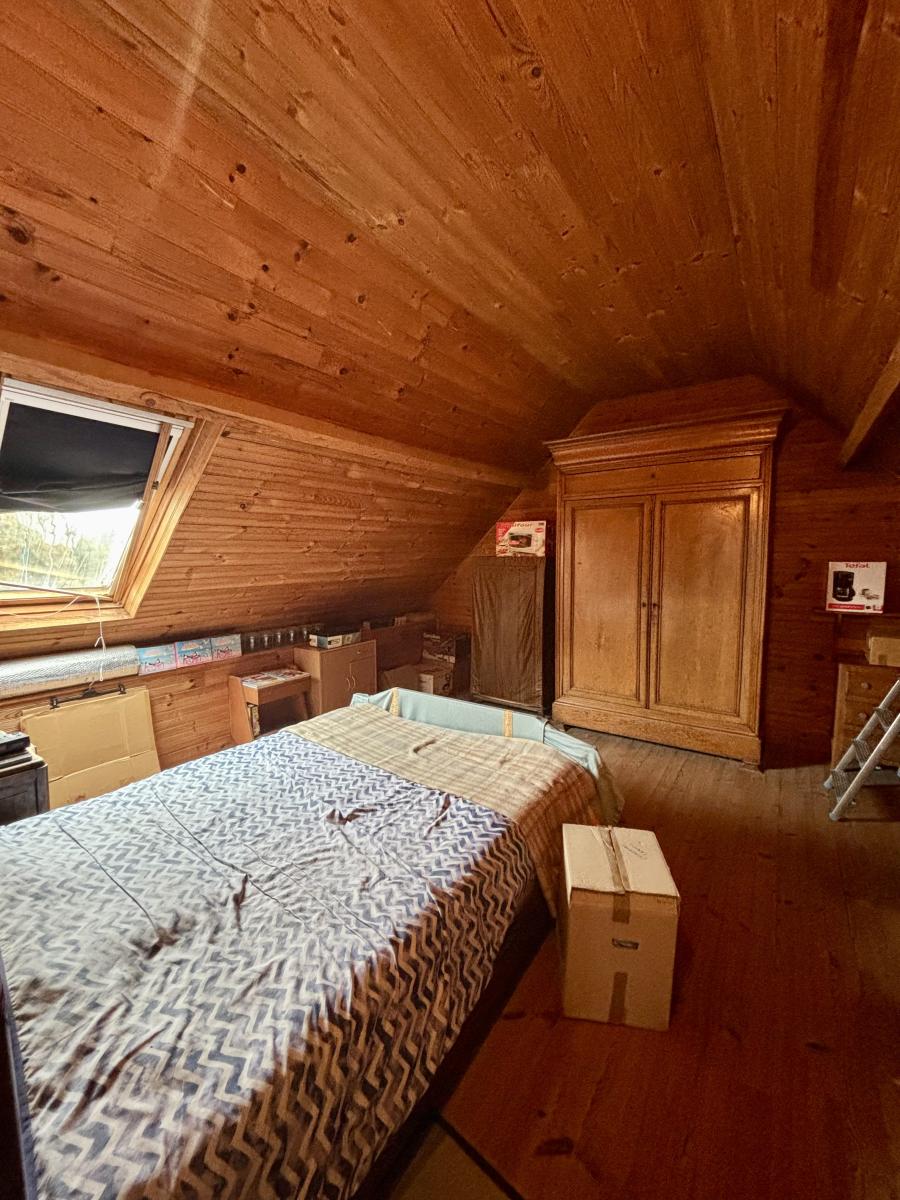 Au rez-de-chaussée : entrée par une véranda, pièce de vie avec cuisine ouverte, salon, salle d’eau et WC.