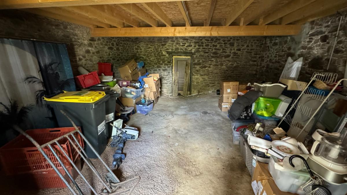 1) grande dépendance en pierre couverture tôle : grande pièce, garage.