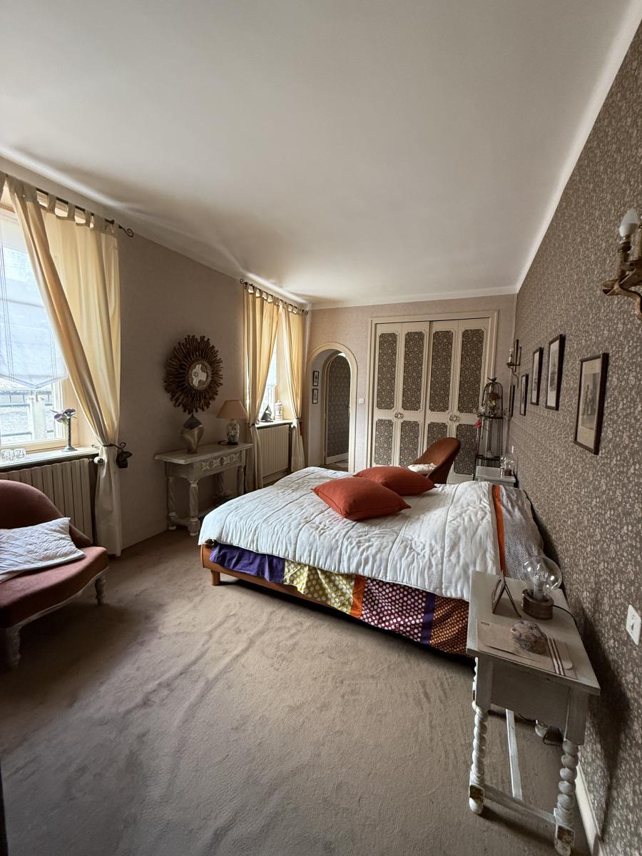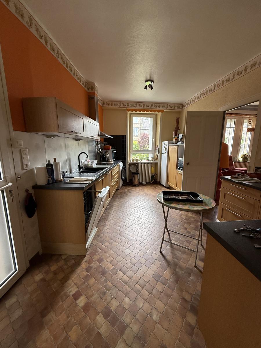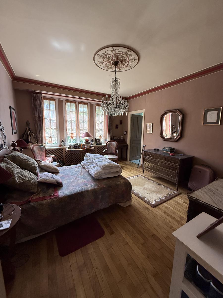 Idéalement situé, Maison de caractère comprenant : - Au rez de chaussée, entrée/pièce de vie avec poêle à bois, une cuisine aménagée, dégagement avec rangements, trois chambres avec chacune une salle de bains ou salle d'eau, un wc. - Grenier au dessus. - Deux pièces donnant sur balcon avec chacune une salle d'eau et un wc sur le côté de la maison. - Quatre garages libres. - Terrain clos de 792m².