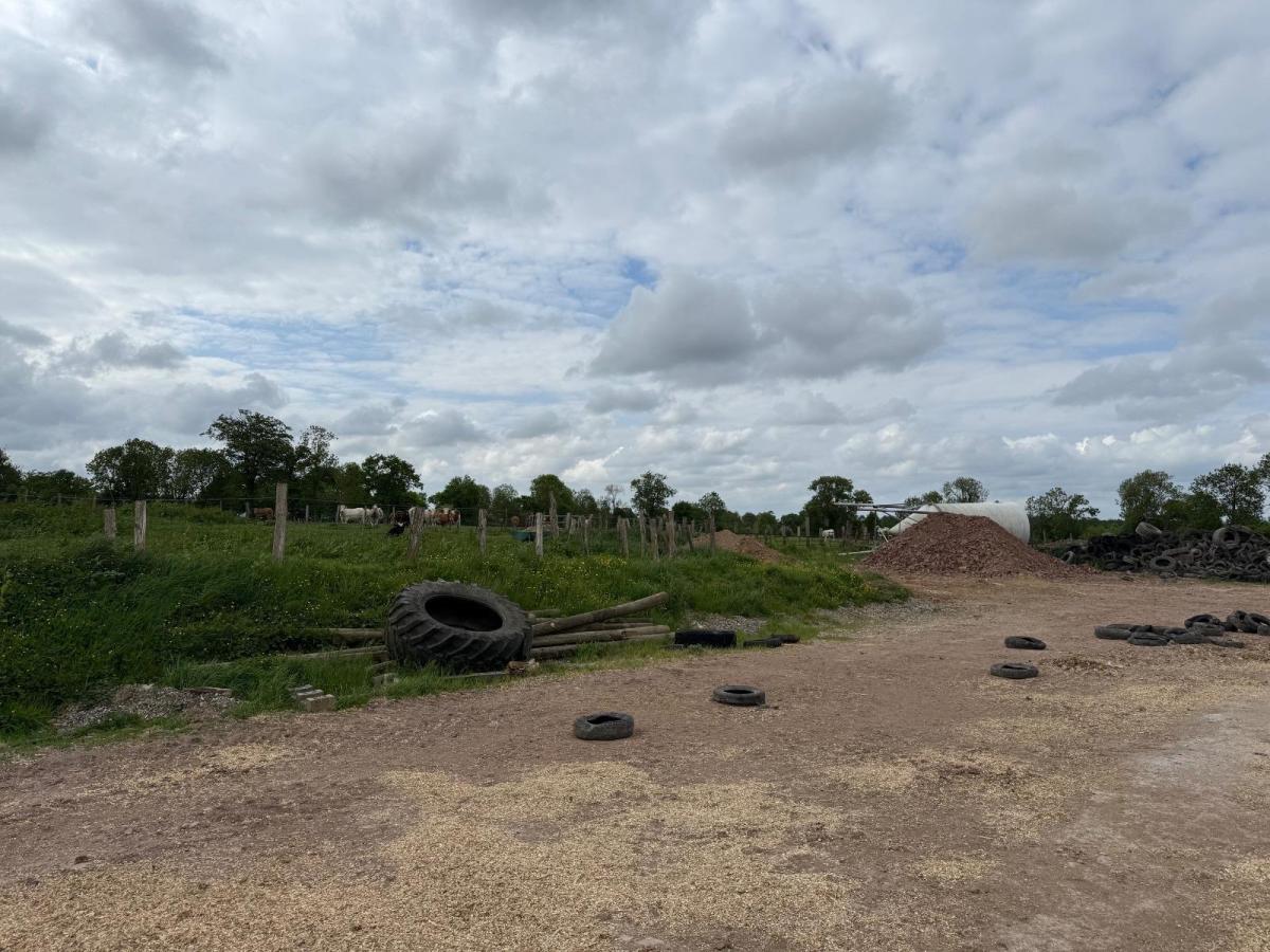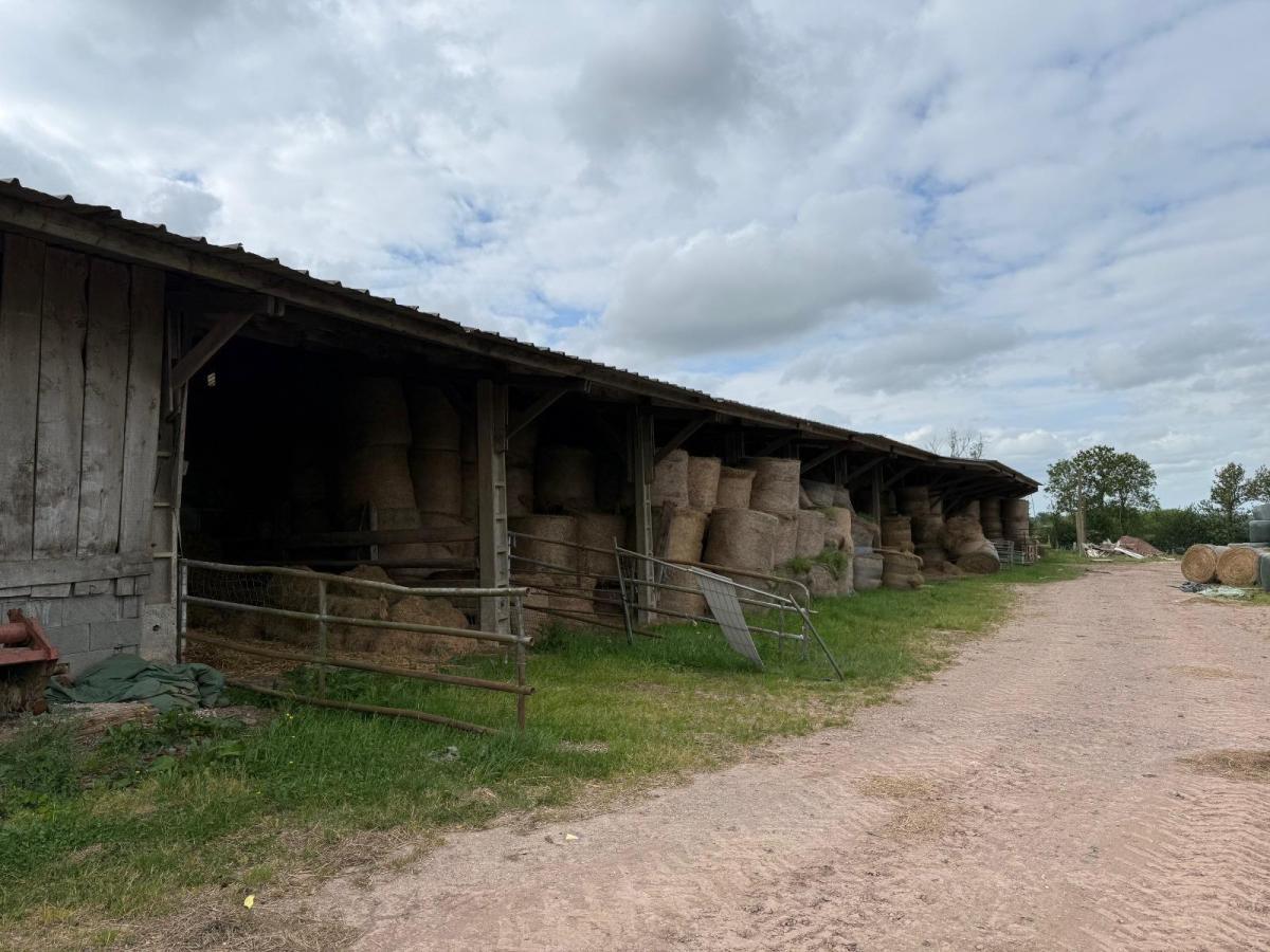 Dans hameau, Maison en pierres mitoyenne d'un côté, comprenant : - Rez-de-chaussée : entrée sur cuisine avec cheminée, séjour salon avec cheminée, une chambre, dégagement, cellier/buanderie, salle d'eau, WC ; - Etage : palier desservant deux grandes chambres. Grenier. Terrasse et cour sur laquelle dépendance à usage de garage et atelier. Parcelle à délimiter par géomètre. Stabulation d'environ 1800 m² avec environ 4 hectares de terrain. Possibilité d'acquérir plus de terrain (12 000 € l'hectare). Terrain et bâtiment libre de toutes locations. Terrain à délimiter par géomètre (à la charge du vendeur). Les informations sur les risques auxquels ce bien est exposé sont disponibles sur le site Géorisques : www. georisques. gouv. fr