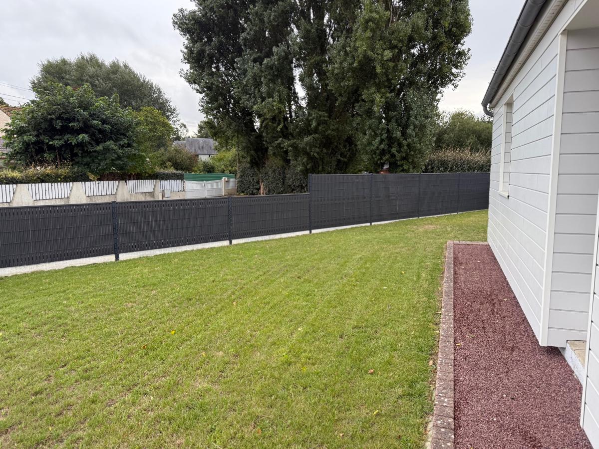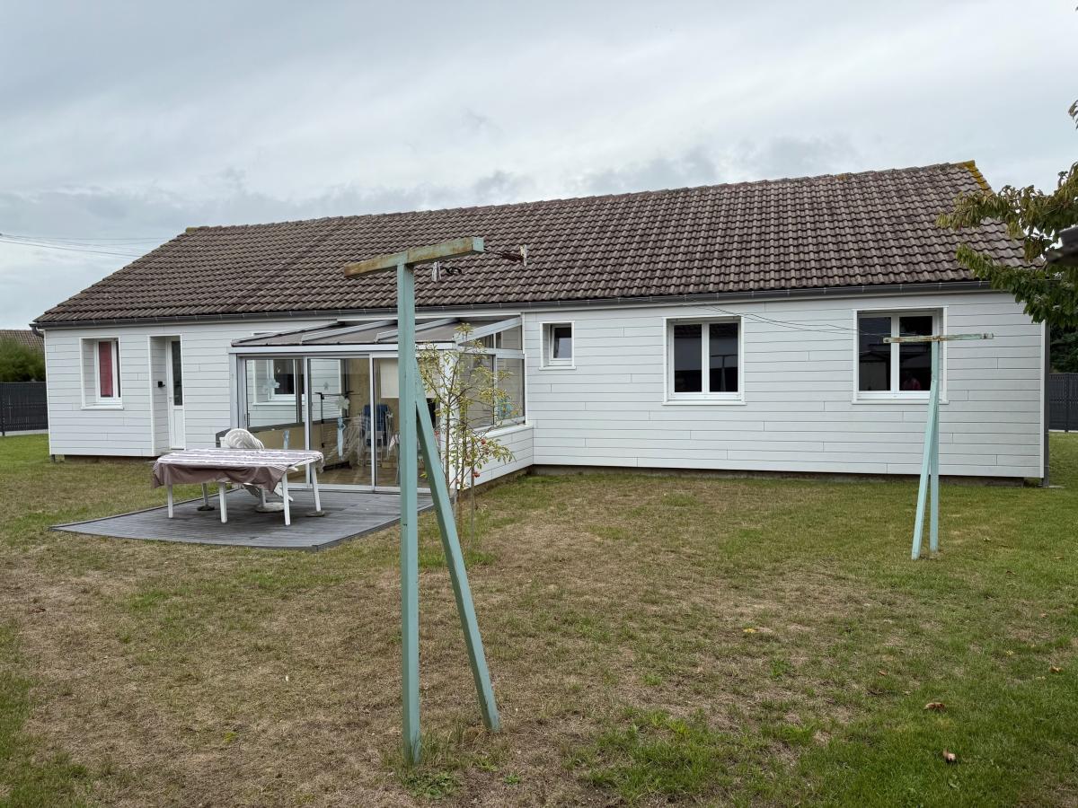 A proximité de Granville, et à environ 300 m de la mer, Maison de plain-pied rénovée, comprenant : Séjour-salon avec cuisine aménagée et équipée, véranda, dégagement, quatre chambres, salle d'eau, WC. A la suite garage. Cour et jardin clos.
