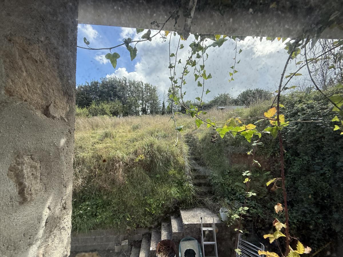 Terrain qui surplombe la maison.