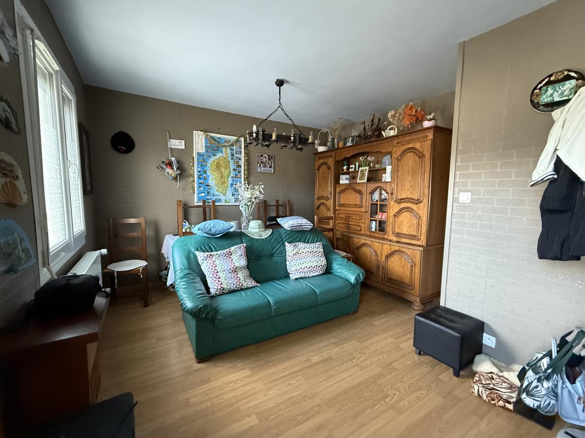 Maison sur sous-sol comprenant une entrée, un séjour-salon, une cuisine aménagée et équipée, une salle d'eau, un WC et deux chambres. Jardin sur l'arrière avec chalet bois et dépendance.