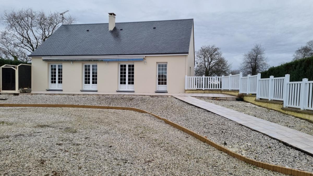 Dans le bourg de Saint-Jean-Des-Champs, un pavillon de plain-pied sur sous-sol. Sur le terrain un grand hangar de stockage d'environ 100 m².