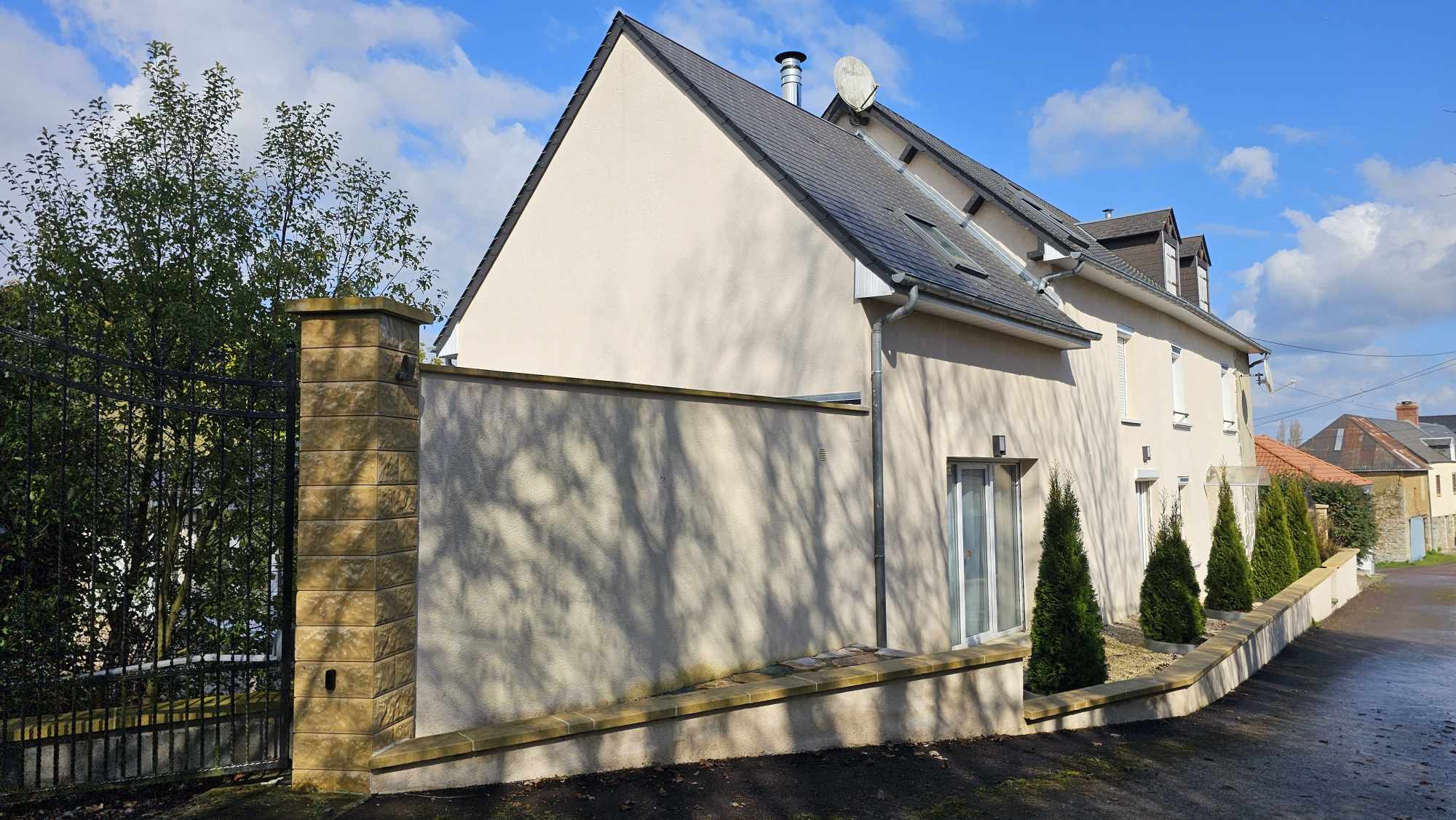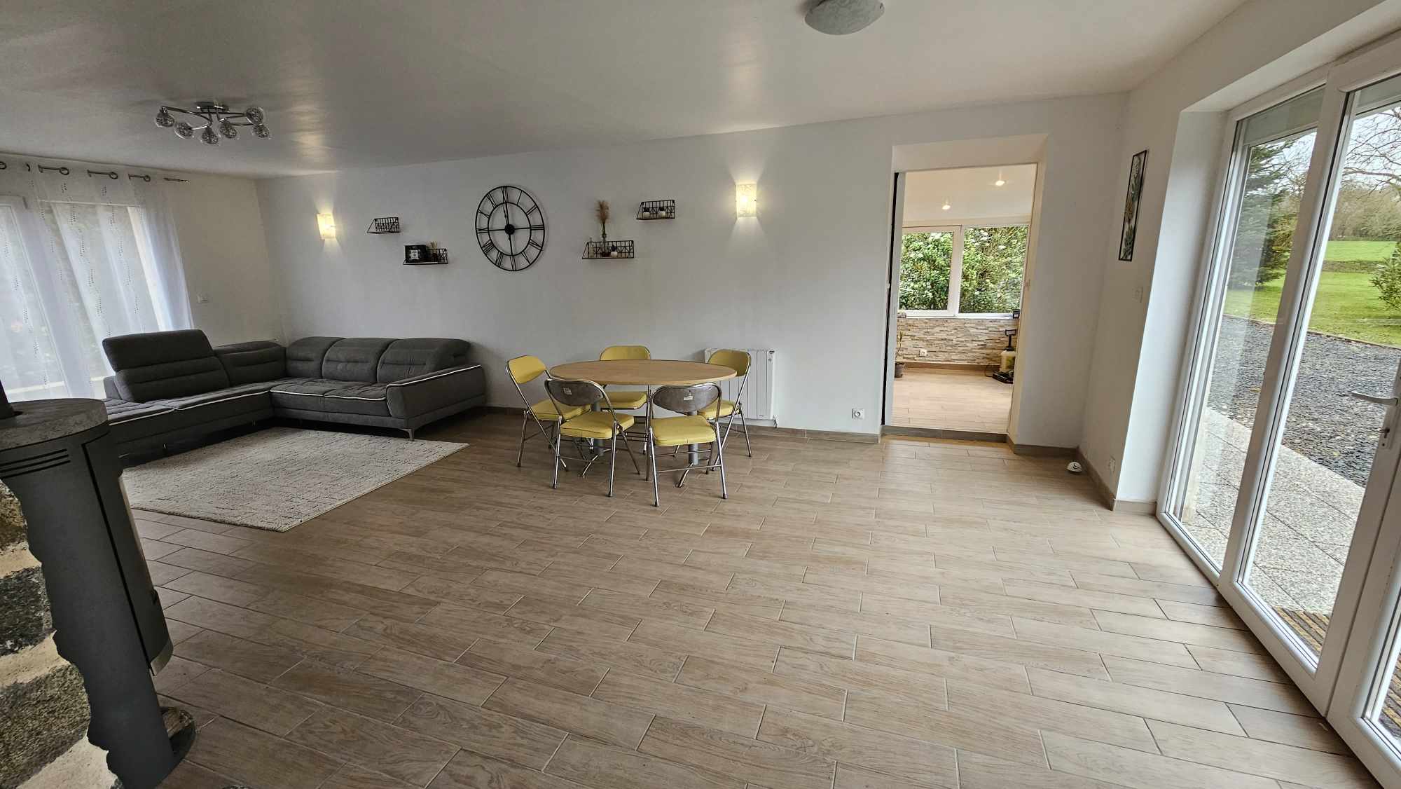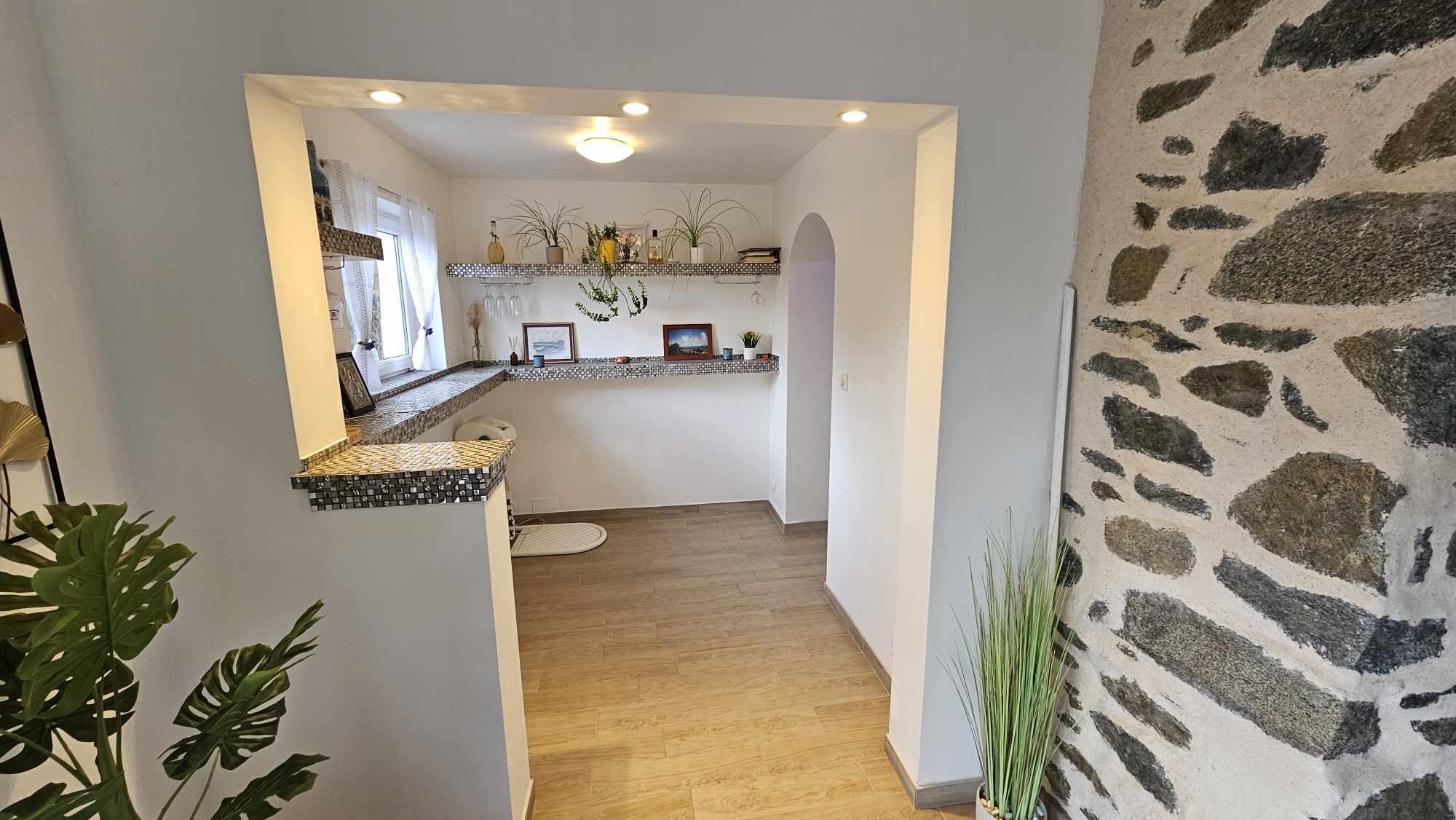 ne maison à usage d'habitation, comprenant : un séjour avec poêle à bois et coin bar, espace à finir d'aménager (cuisine), dégagement avec placards et wc, bureau, salon avec cheminée, cuisine, salle de bains avec wc. - à l'étage : couloir desservant une chambre avec placard, petite pièce, wc et salle d'eau, grande mezzanine. Sur autre partie à l'étage : mezzanine avec salle d'eau et wc, deux chambres avec placards. Jardin avec arbres fruitiers, dépendances, kiosque, poulailler. Px honor. inclus 5,17% (300.000€ NV + 15.500 € HN) ch. acq.