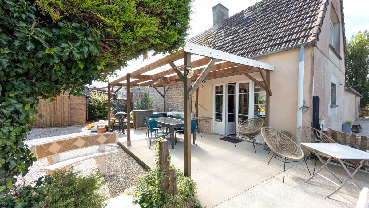 Grande cour fermée devant et sur l'arrière de la maison deux terrasses : une couverte et l'autre avec une vue magnifique sur la rivière et tournée vers l'ouest pour de magnifiques couchés de soleil + un terrain de pétanque.