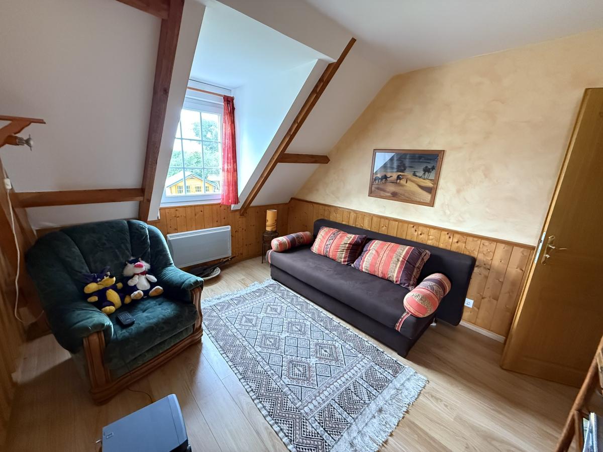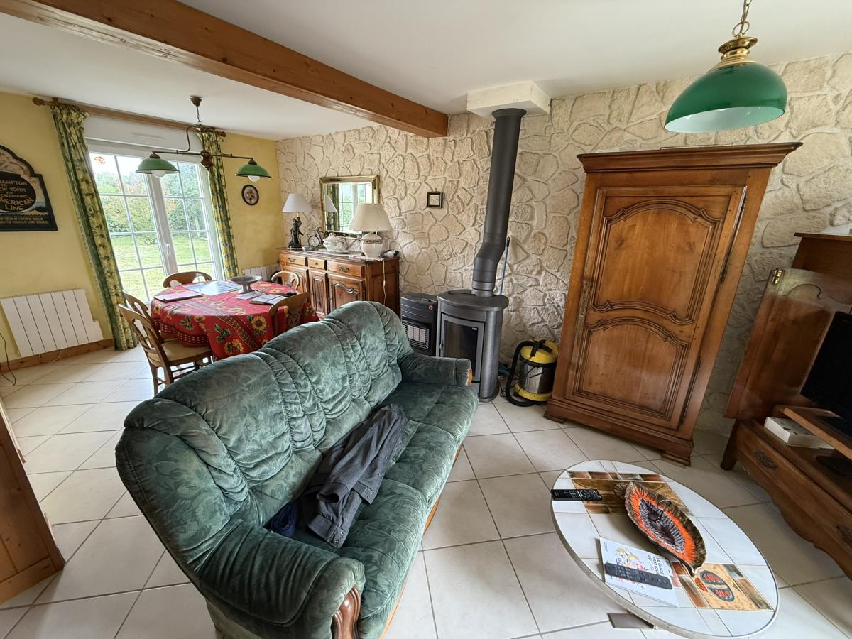 - Au rez de chaussée: entrée, séjour avec poêle à bois et cuisine ouverte équipée, une chambre, salle d'eau, WC.
