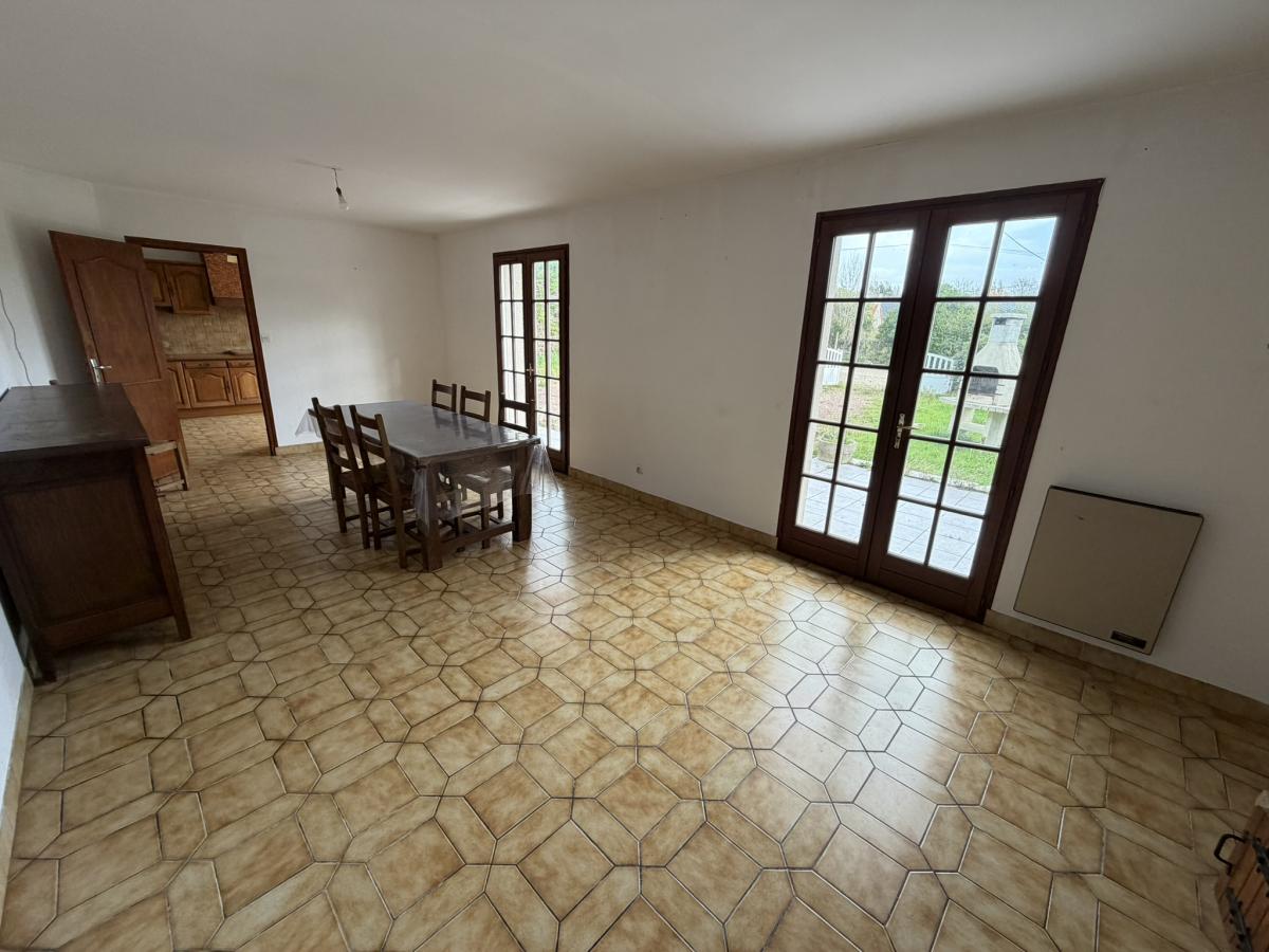 - Au rez de chaussée : séjour avec cheminée-insert, cuisine équipée, arrière-cuisine, dégagement, WC, salle de bains avec douche et baignoire, deux chambres, garage.