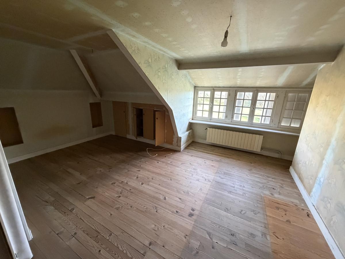 - A l'étage: palier, très grande chambre (possibilité d'en faire deux), grenier aménageable.
