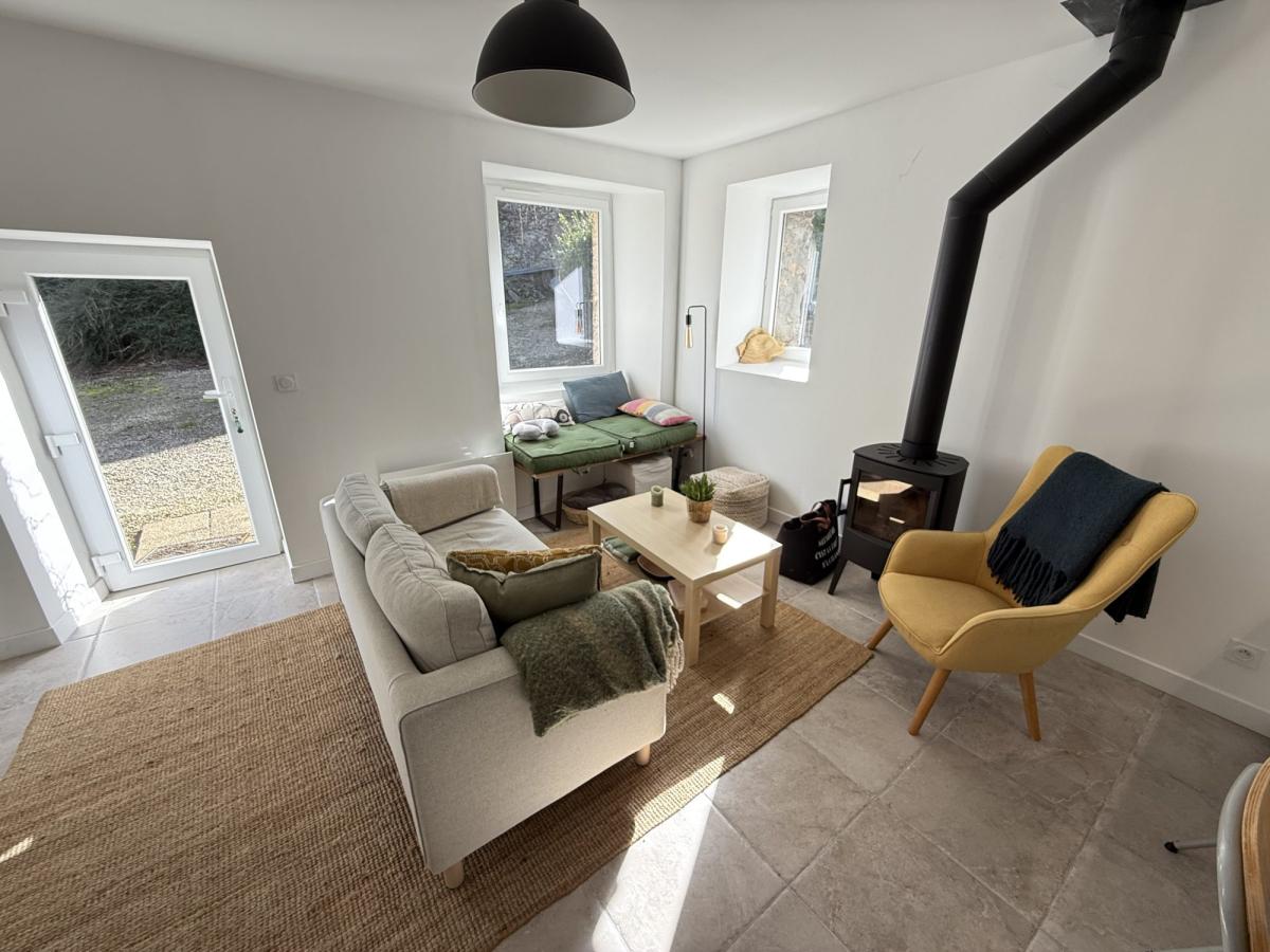 2°) Maison annexe entièrement refaite à neuf comprenant séjour avec poêle à bois et cuisine ouverte équipée, salle d'eau, WC, deux chambres. Garage fermé à la suite et triple garage ouvert. Jardin.
