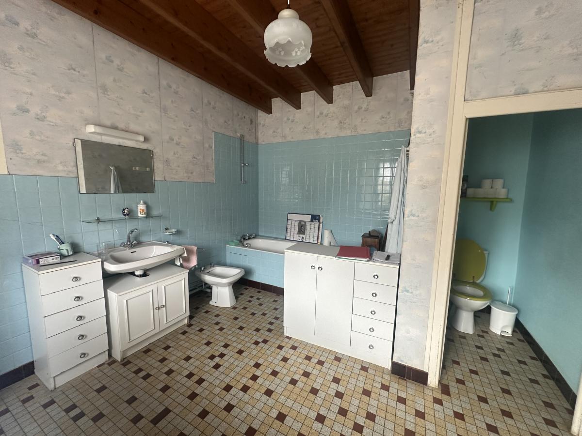 Au rez-de-chaussée : Une belle cuisine/salle à manger de 32m² avec cheminée ouverte, un salon/séjour de 26m², une grande salle d'eau de 12m², une arrière cuisine.