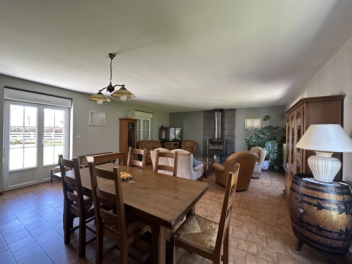 Au rez-de-chaussée : Une vaste entrée avec dégagement et placards, une belle cuisine/salle à manger aménagée et équipée (18m²) + cheminée ouverte, un vaste salon/séjour de 44m² équipée d'un poêle à bois (lumière traversante avec accès aux terrasses des deux côtés), trois chambres dont une avec placards, une salle d'eau refaite en 2025, une seconde salle d'eau (8m²), wc indépendant avec lave-mains.