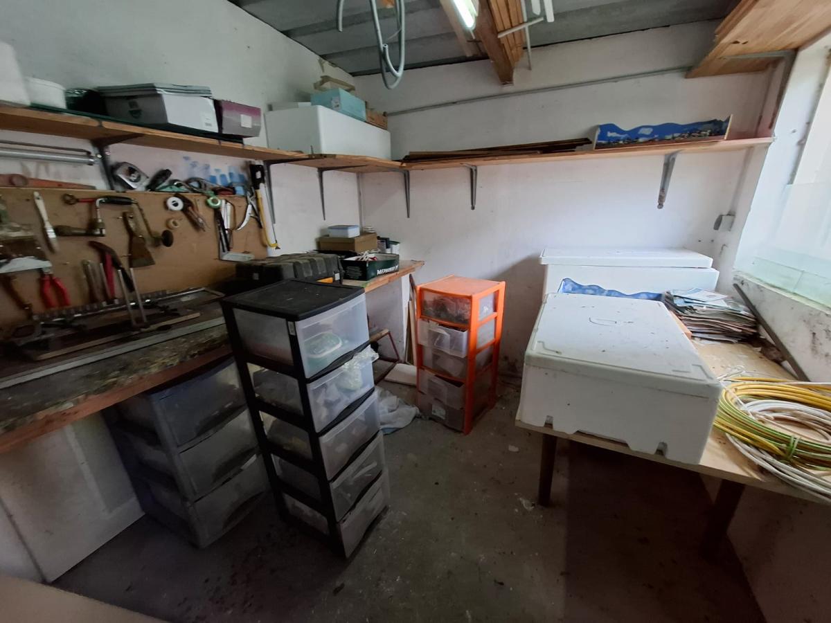 Cour sur l'arrière avec dépendances/rangement.
