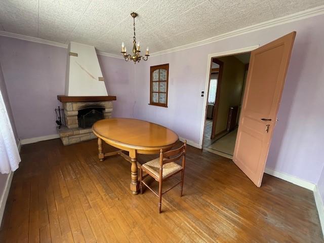 - Au rez-de-chaussée : entrée, cuisine, séjour avec cheminée, garage avec WC, en annexe : atelier, buanderie, cellier