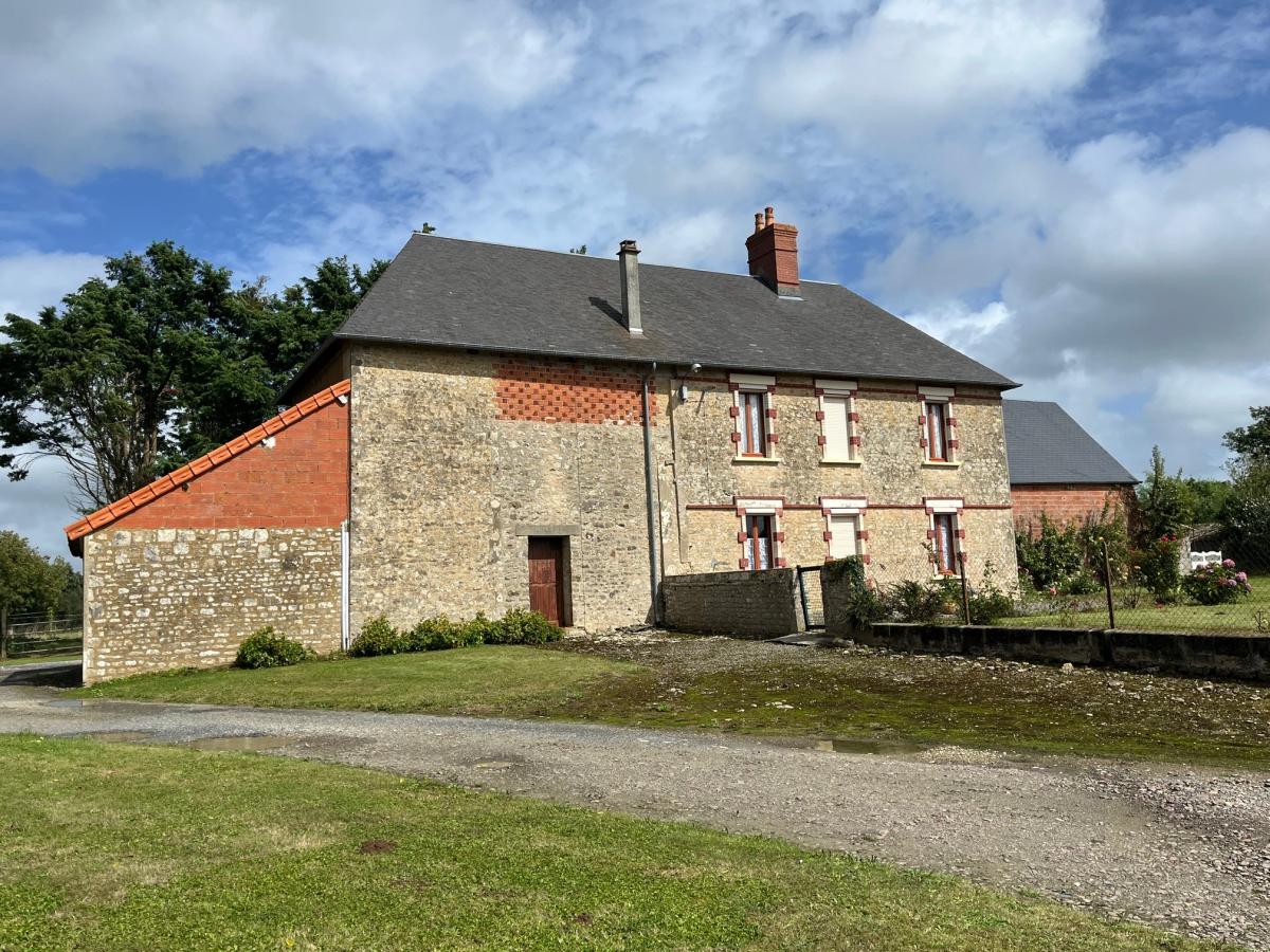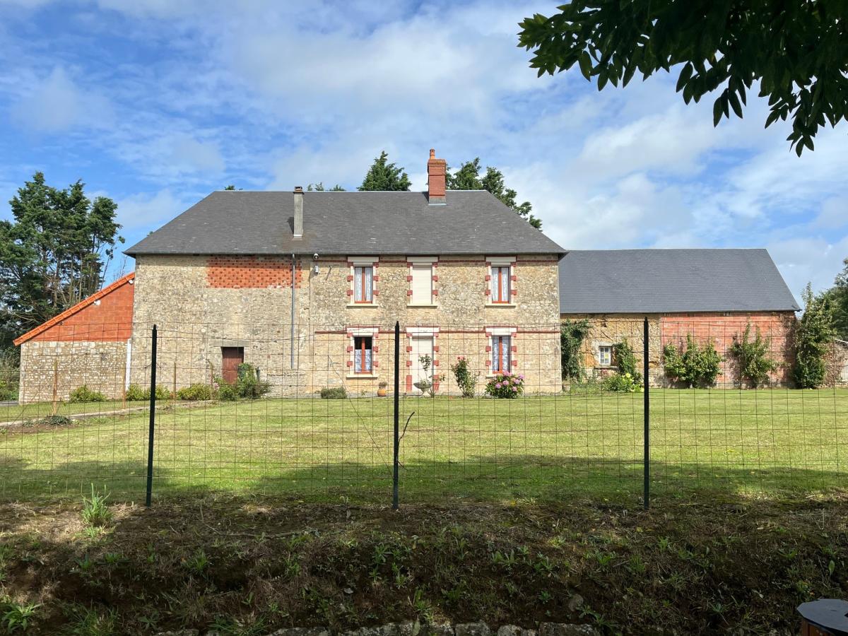 Maison d'habitation en pierres et masse, couverte en ardoises, comprenant : Cuisine avec cheminée (poêle à bois) 20 m², salon 20 m², salle de douches, wc, buanderie, A l'étage : deux chambres 20 m², wc et lavabo, Attenant : chaufferie 30 m², grenier sur l'ensemble, Dépendance en masse sur le côté comprenant deux pièces de 30 m², Garage 25 m², Mare, Terrain avec herbage attenant, l'ensemble pour 1ha 20a 97ca - Chauffage fuel - Fenêtres bois simple vitrage - Volets roulants électriques - Puits