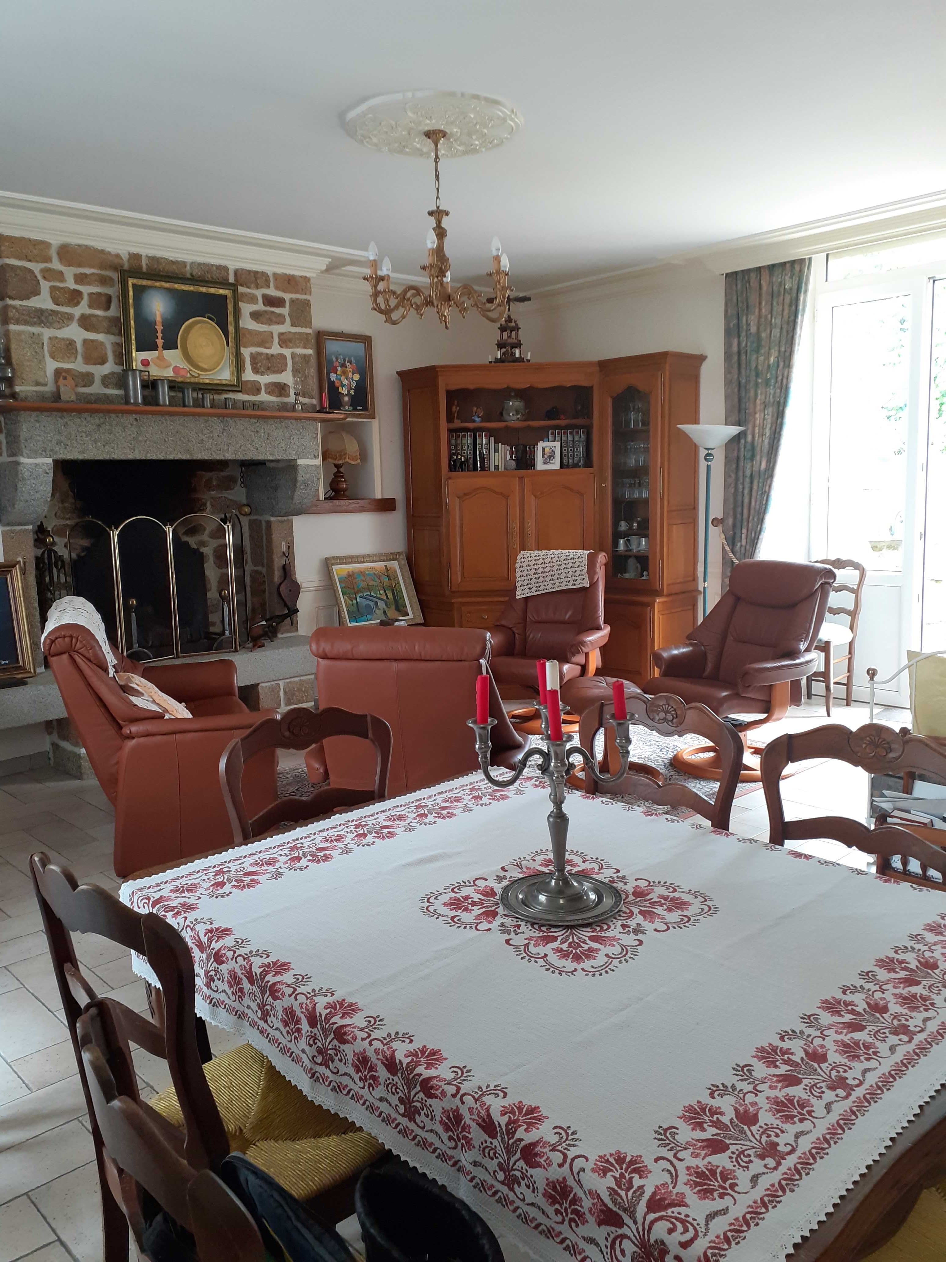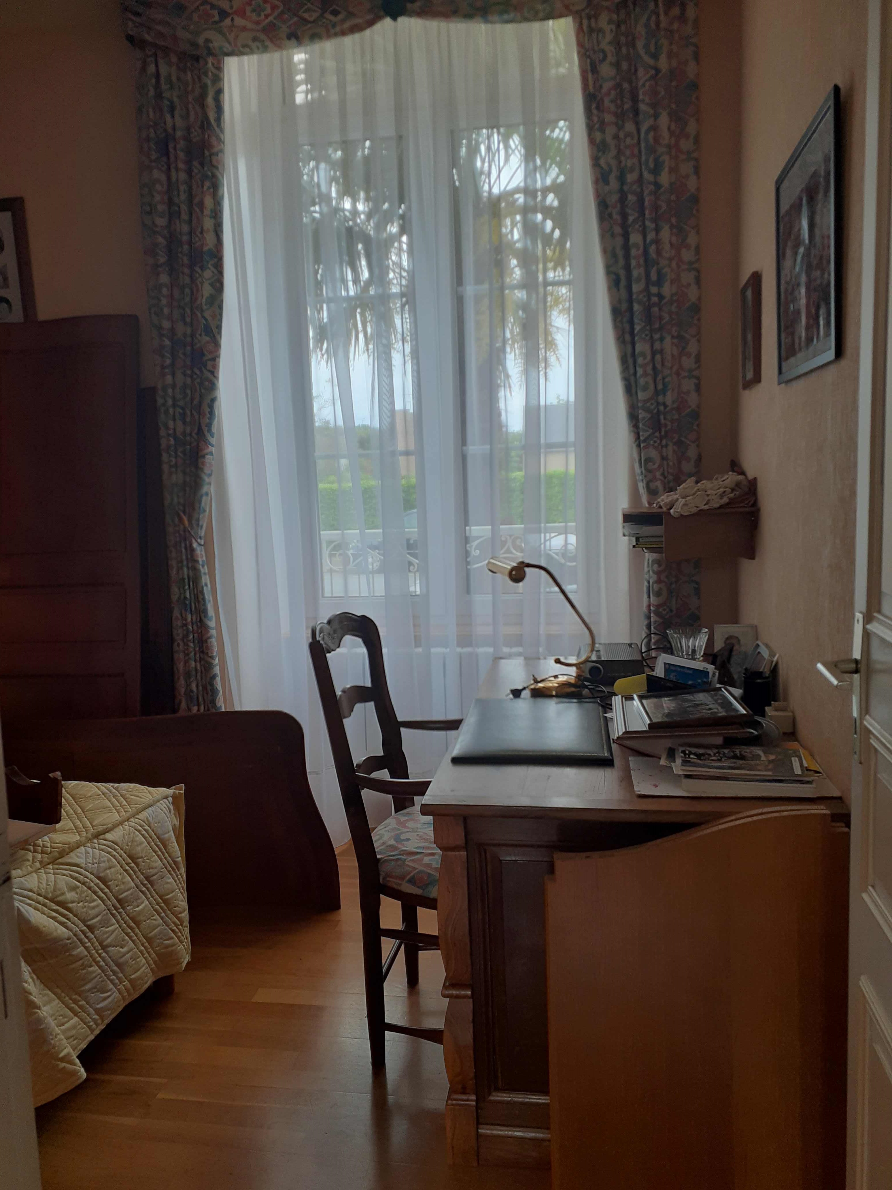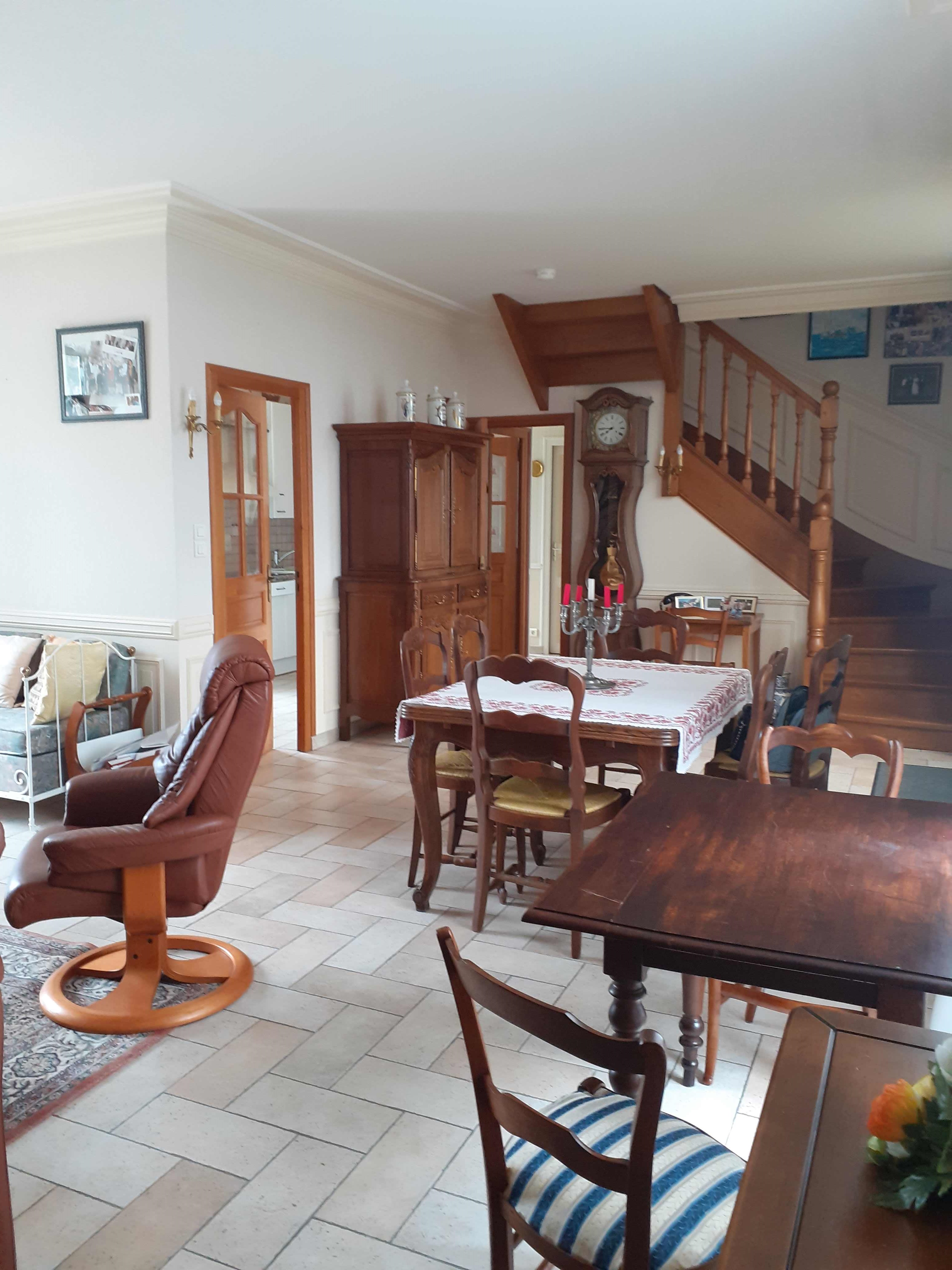 -Au rez-de-chaussée : entrée, séjour-salon avec cheminée ouverte, bureau, cuisine aménagée et équipée, WC avec lave-mains, salle d'eau ;