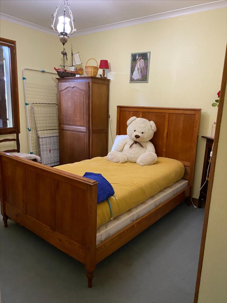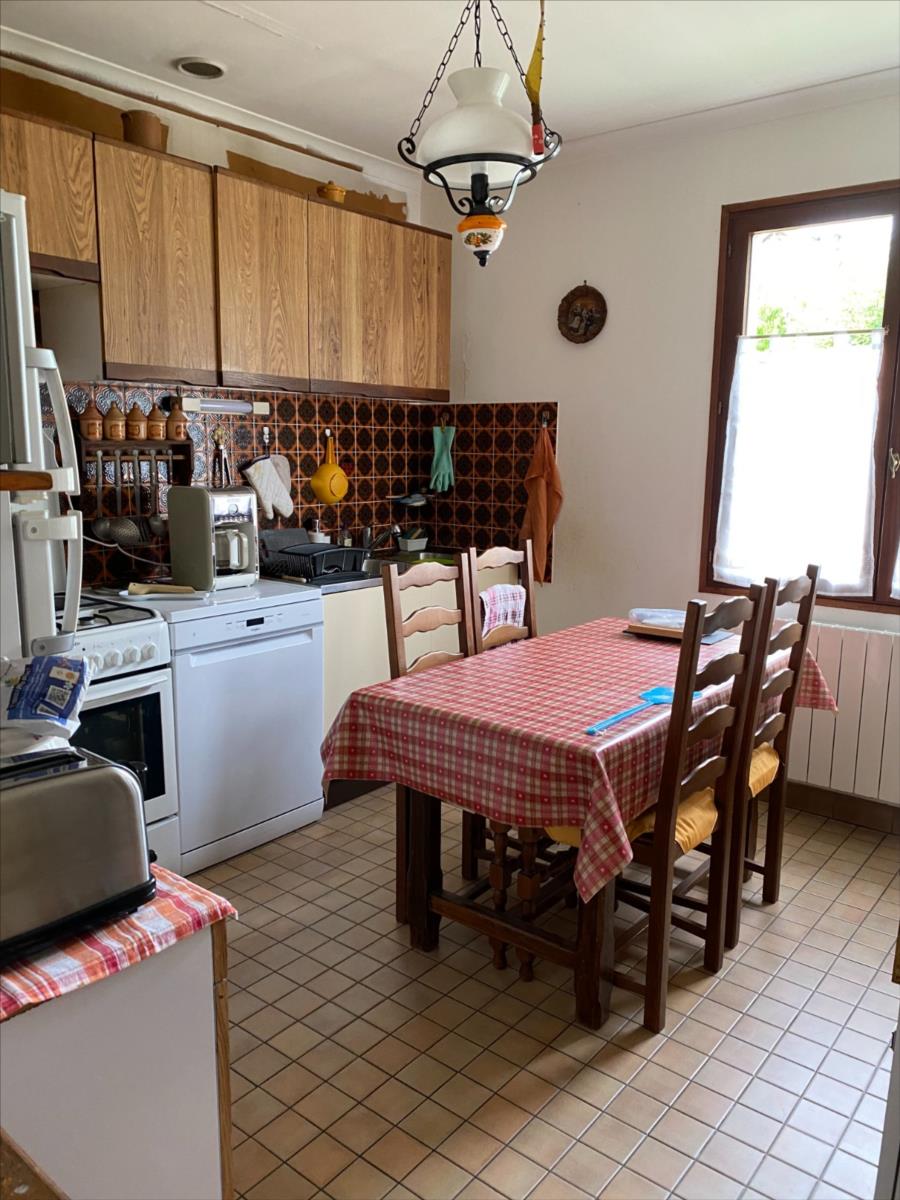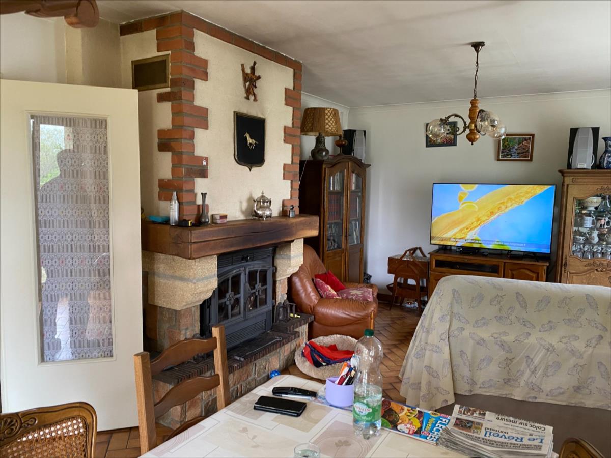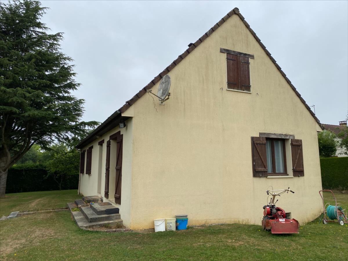 Pavillon sur sous sol construit en siporex et recouvert de tuiles mécaniques comprenant:- entrée avec placard, séjour-salon avec cheminée-insert, cuisine, couloir, 3 chambres (2 avec placard), salle de bain, wc.- combles non aménagés- s/sol: garage, atelier, cave, remiseChauffage au bois (insert avec répartiteur de chaleur) et électriqueRaccordé au tout à l'égoutTerrain 1250m²
