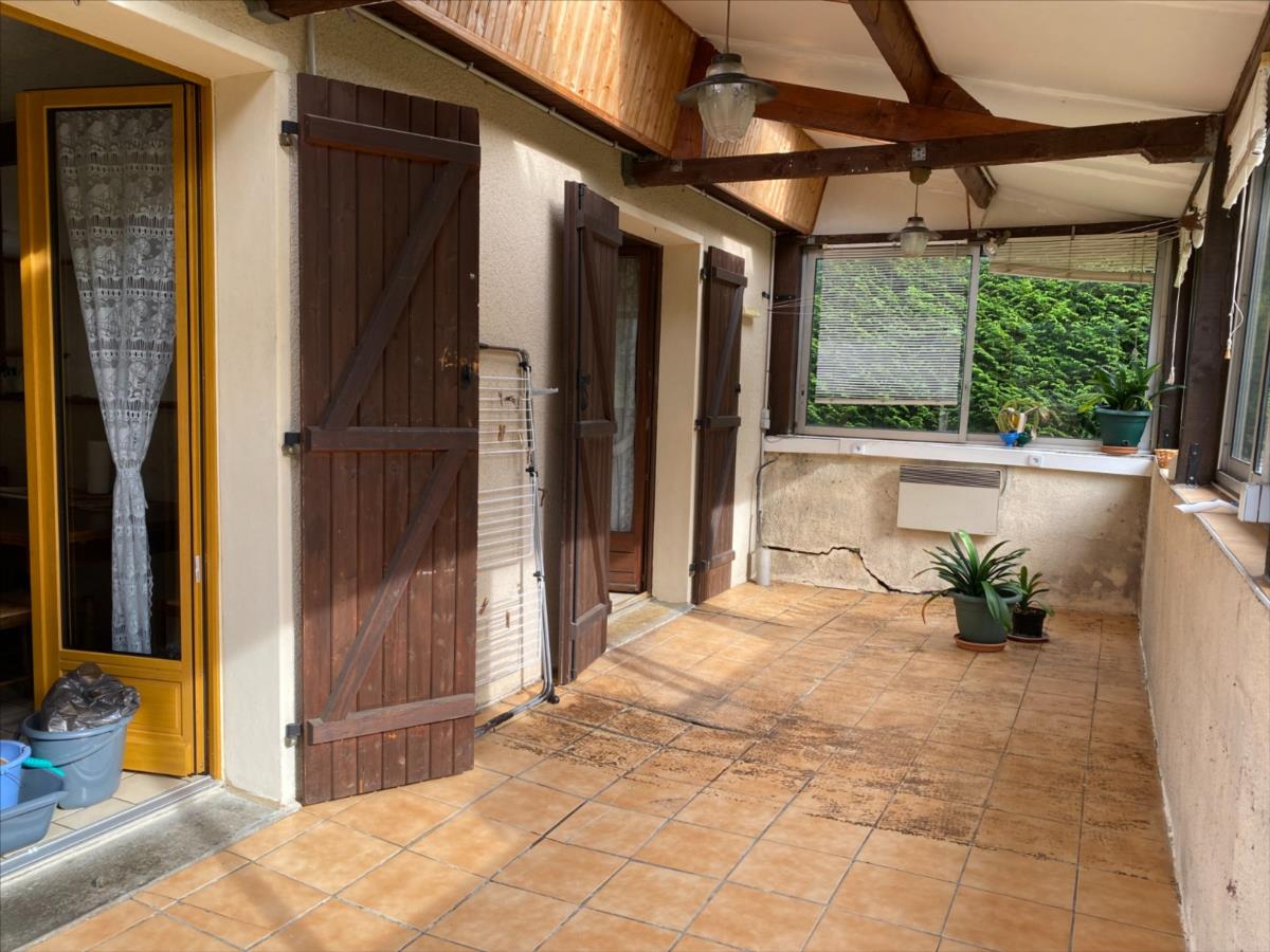 - au rez de jardin: véranda, cuisine aménagée et équipée (four, plaque et réfrigérateur) ouverte sur séjour-salon avec cheminée-insert, couloir, 3 chambres, salle de bain complète, wc.