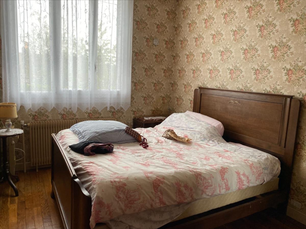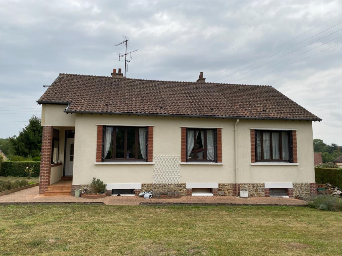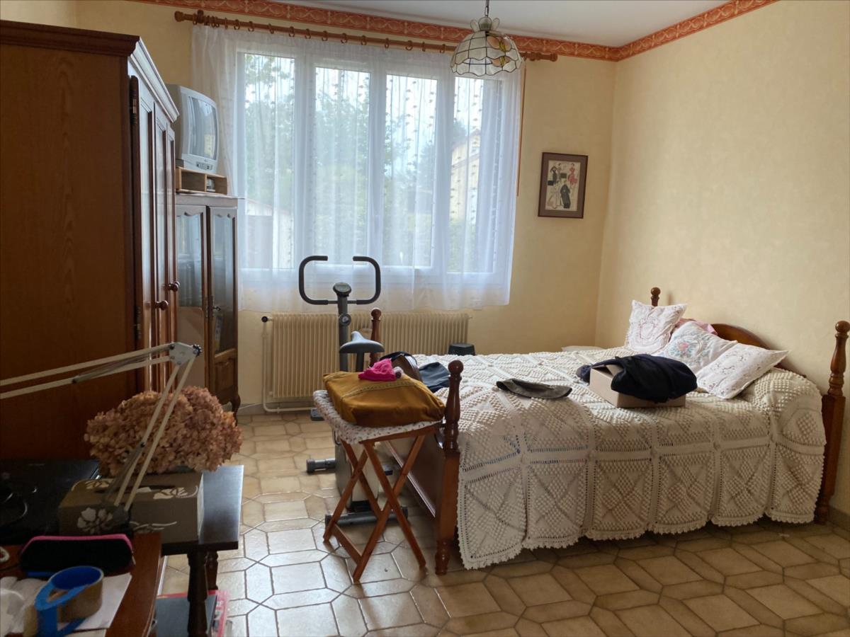 Pavillon sur sous sol construit en pierres et briques, couverture tuiles mécaniques, comprenant:- au RDC surélevé: sas d'entrée, entrée, cuisine aménagée et équipée (four, plaque indiction, hotte, réfrigérateur), séjour-salon, chambre parquetée, chambre double, salle de bain, wc.