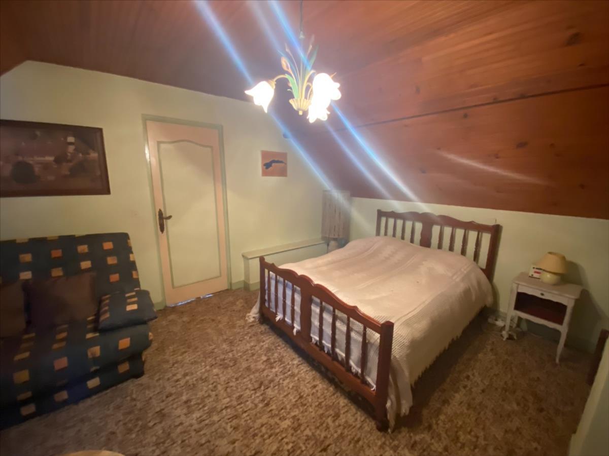 - au rez-de-chaussée : une entrée, deux chambres, une cuisine, un grand séjour, une salle d'eau et un WC. - à l'étage : deux chambres et un débarras.