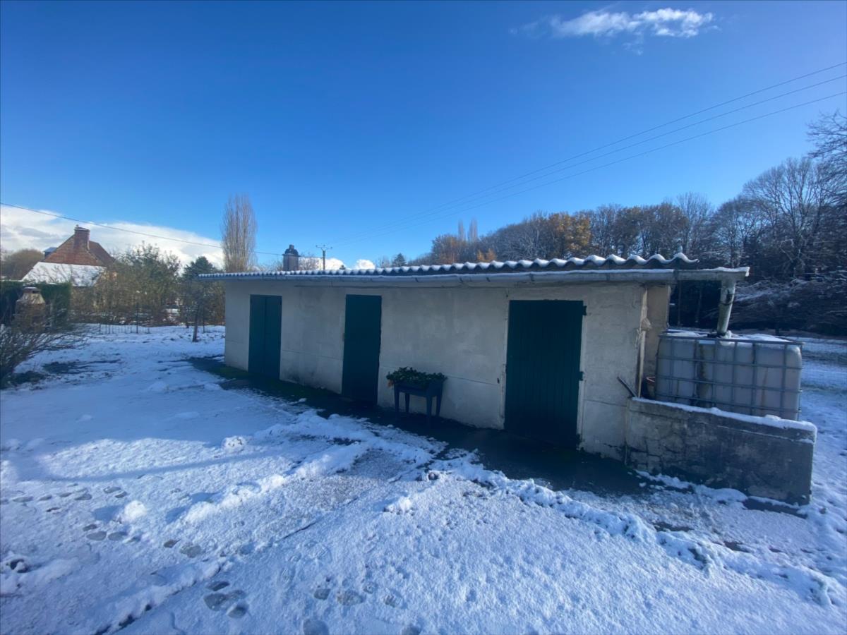 Grand terrain de 11575m². Présence d'un bâtiment d'appoint servant de chaufferie et de pièces de stockage, raccordé à l'électricité. Herbage. Jardin.