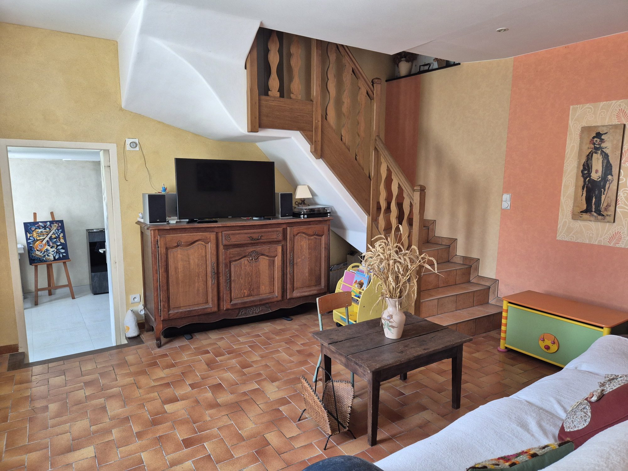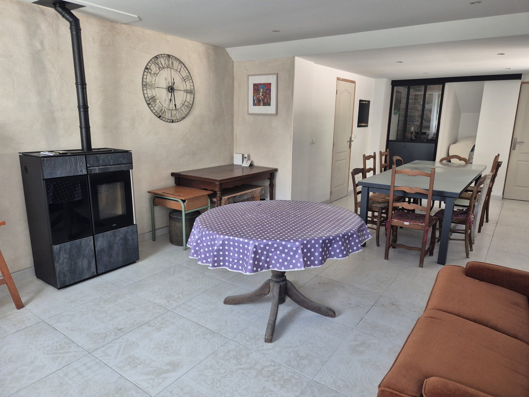 La seconde maison renferme au rez-de-chaussée : un salon donnant accès à la première maison, un séjour avec poêle à granulé, un débarras, un WC et un cellier. A l'étage : une pièce à usage de chambre, une chambre, et un grenier en cour d'aménagement avec WC. Une cave en sous-sol.