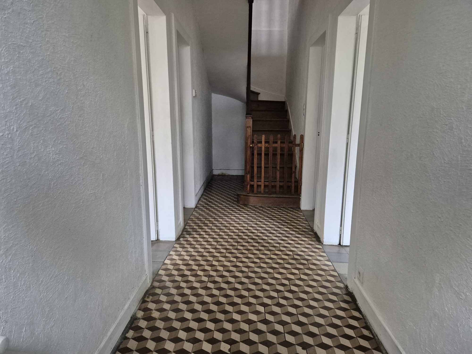 Elle comprend au rez-de-chaussée : une entrée, une salle à manger, une cuisine, un salon, une salle de bains avec WC et une chambre. A l'étage, un palier dessert : trois chambres, une salle d'eau, un WC et un débarras. Grenier au-dessus