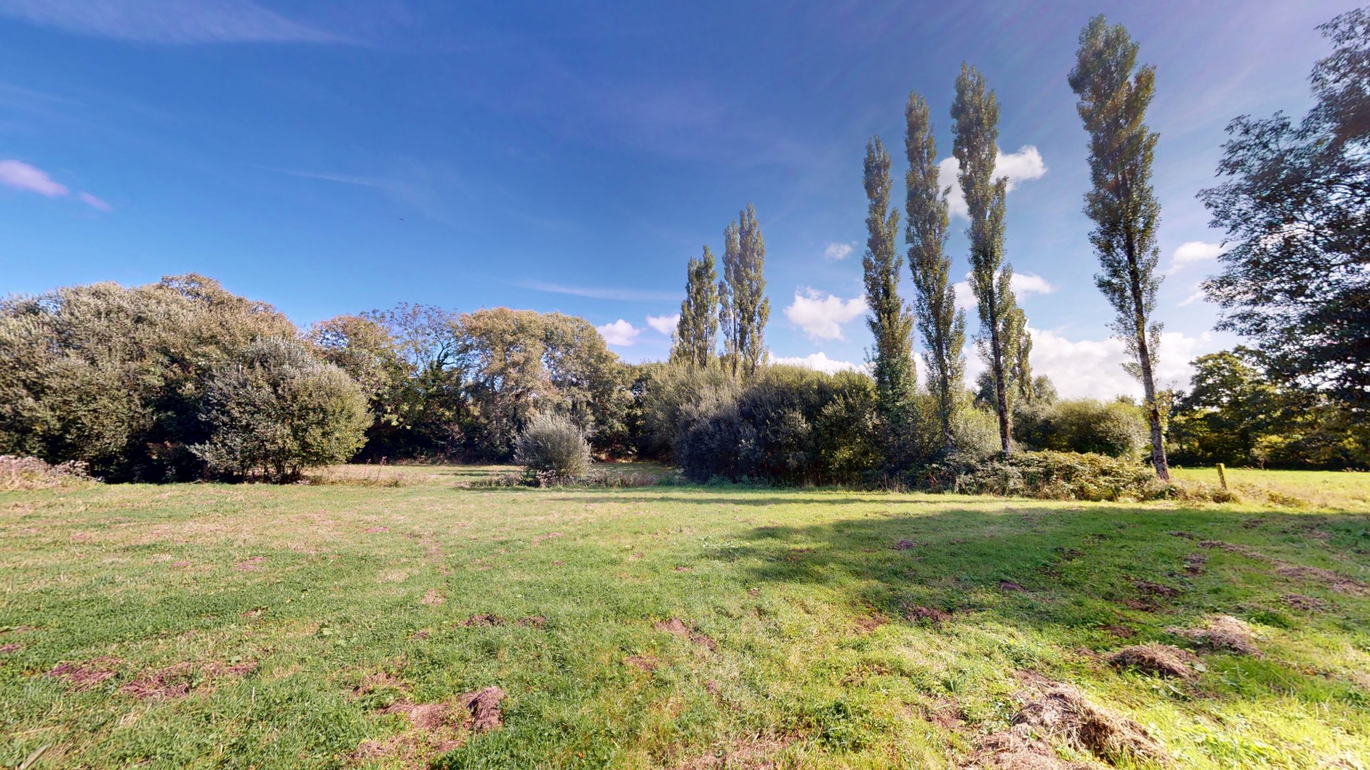 Prés autour avec plan d'eau et ancien lavoir.