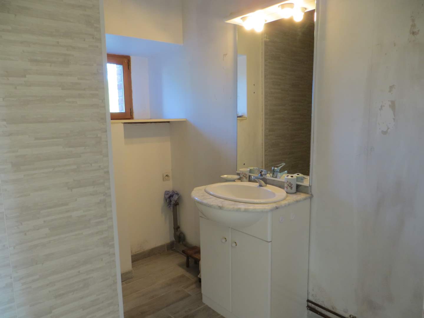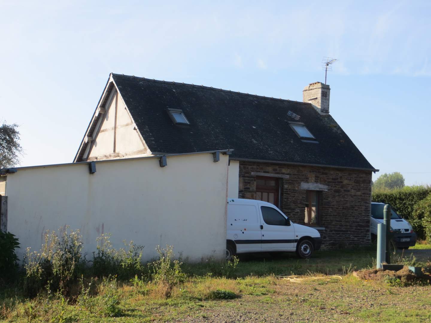 1-Maison principale (101.50 m2) : En rez de chaussée : entrée avec placards, cuisine ouverte sur salle à manger/salon, une chambre , salle d’eau, wc, autre chambre. A l’étage : chambre, grenier aménageable. Sous-sol total à usage de garage, cave. Autre garage en terre battue. Extension en colombage à usage de cave. Jardin, poulailler. 2-Autre maison louée (330 € + 120 €, 47.39 m2) (charge : eau, électricité, TOM) : En rez de chaussée : salle à manger/salon, cuisine, salle d’eau, wc, garage. A l’étage : pièce palière, chambre.