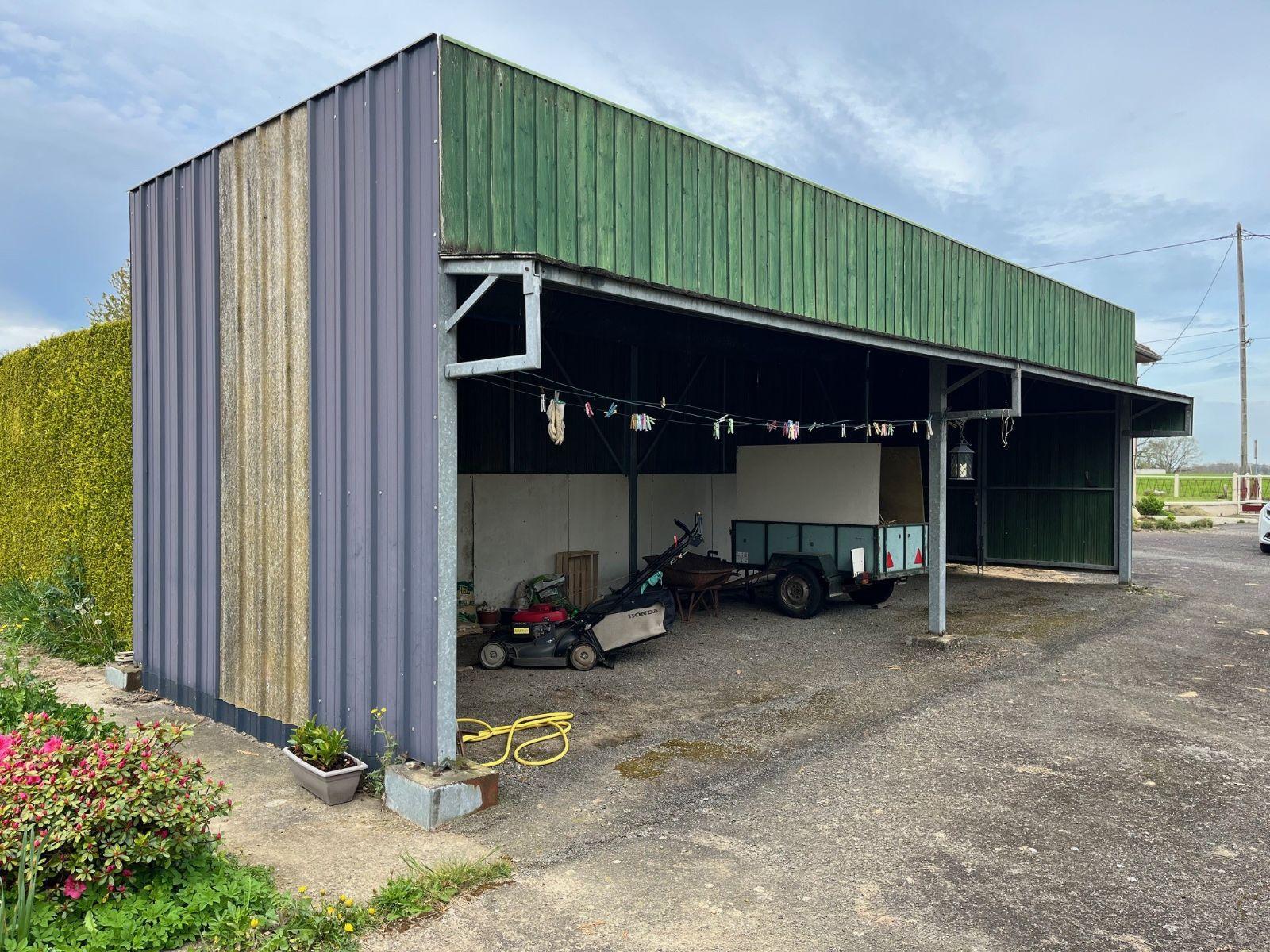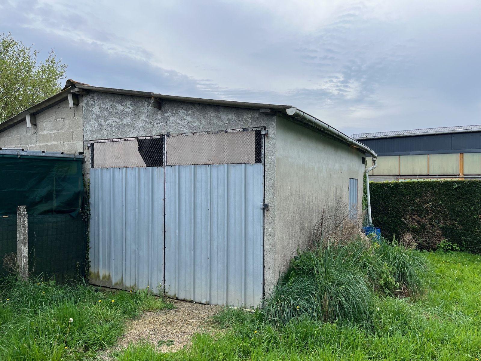 Garage et poulailler en parpaings sous tôles fibrociment.