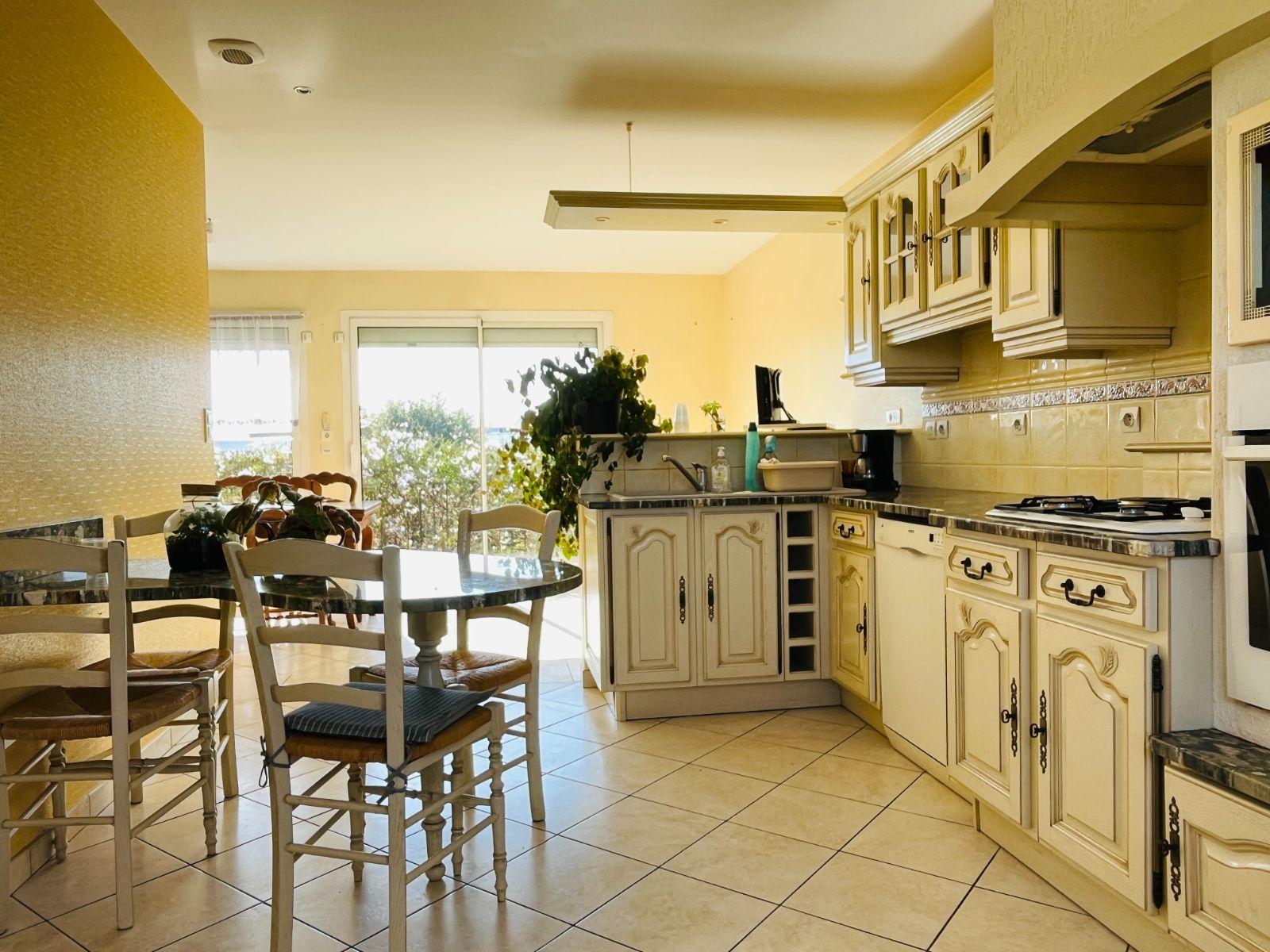 - au rez-de-chaussée surélevé : entrée, cuisine aménagée et équipée, séjour avec accès balcon, salon avec insert, trois chambres, salle d'eau et wc ;