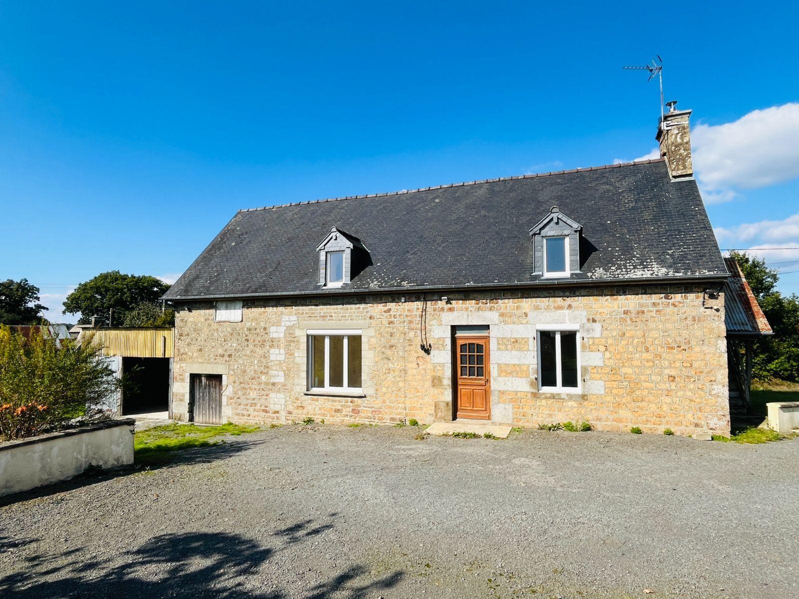 A vendre sur la commune de Le Mesnil-Rainfray, à 5 minutes de Juvigny-les-Vallées et à 15 minutes de Saint-Hilaire-du-Harcouët, en campagne au fond d'une impasse, maison en pierres sous ardoises de 71 m² habitables, comprenant :